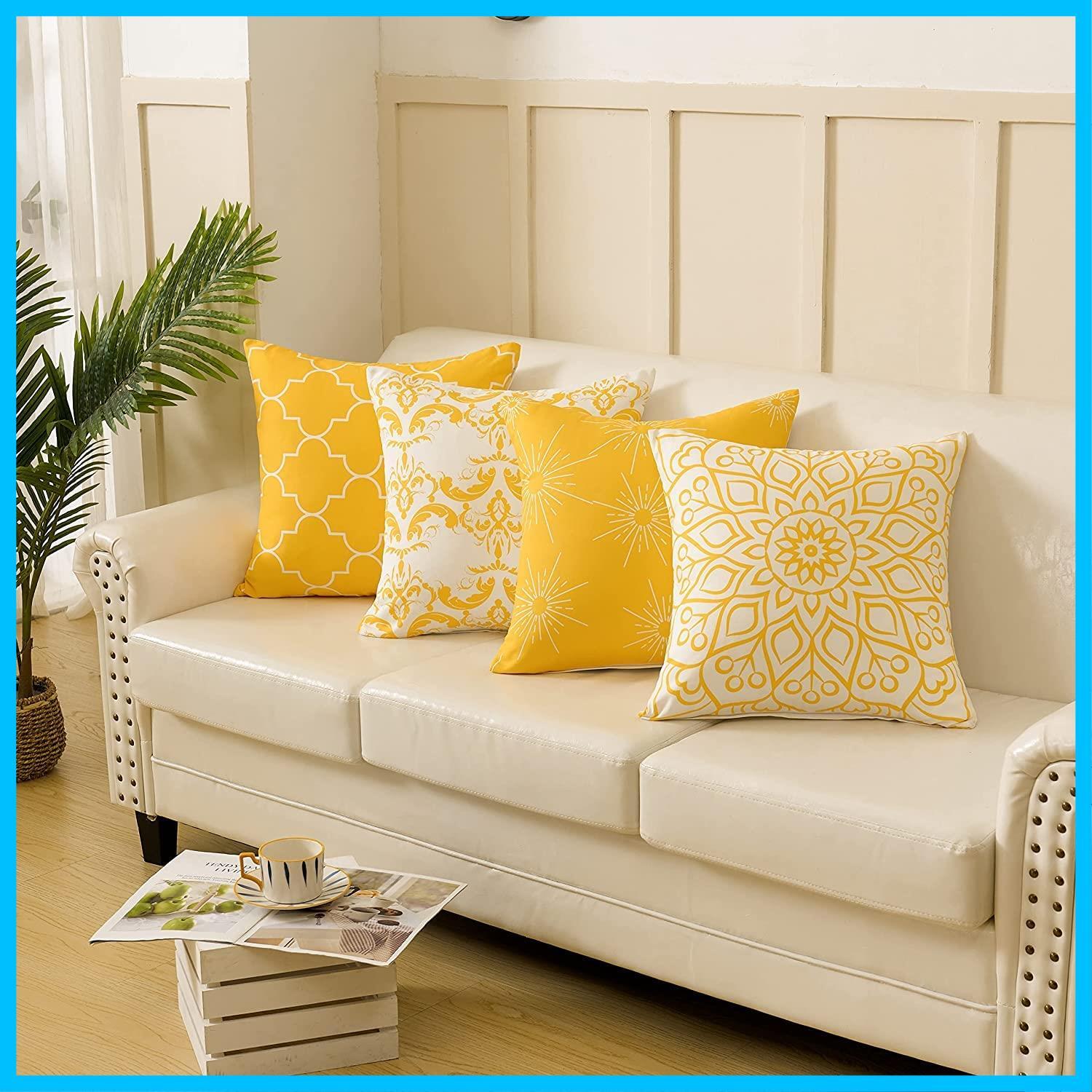 Pknoclan クッションカバー 45x45cm装飾枕カバー 4枚セット北欧ソファ背当て おしゃれシンプル座布団カバー モダンスクエアピローケース 家庭 オフィス 椅子 車内 ベッド インテリア 装飾 飾り イエロー