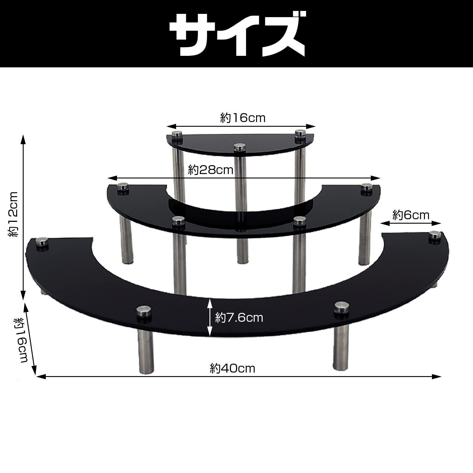 フィギュアケースは、大切なフィギュアや小物をオシャレにディスプレイしたい人に。3段ステージ式で黒色アクリルとねじビスのセット。フィギュア、コレクションアイテム、化粧品などの小物をお店風に陳列できます。