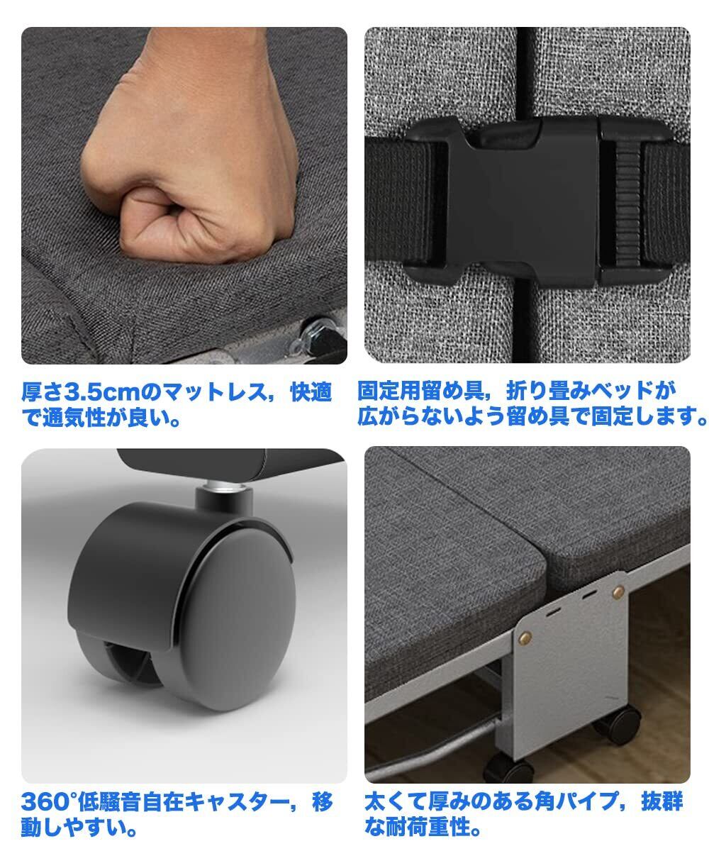 【数量限定】おりたたみベッド コンパクト 折りたたみ ベッド シングル 簡易ベッド 折り畳み ベッド マットレス付き 組立不要 おりたたみべッド 軽量小型 ワンルーム 仮眠 来客 子供部屋 簡単収納 キャスター付き 200kg耐荷重 (グレ「幅80CM」)