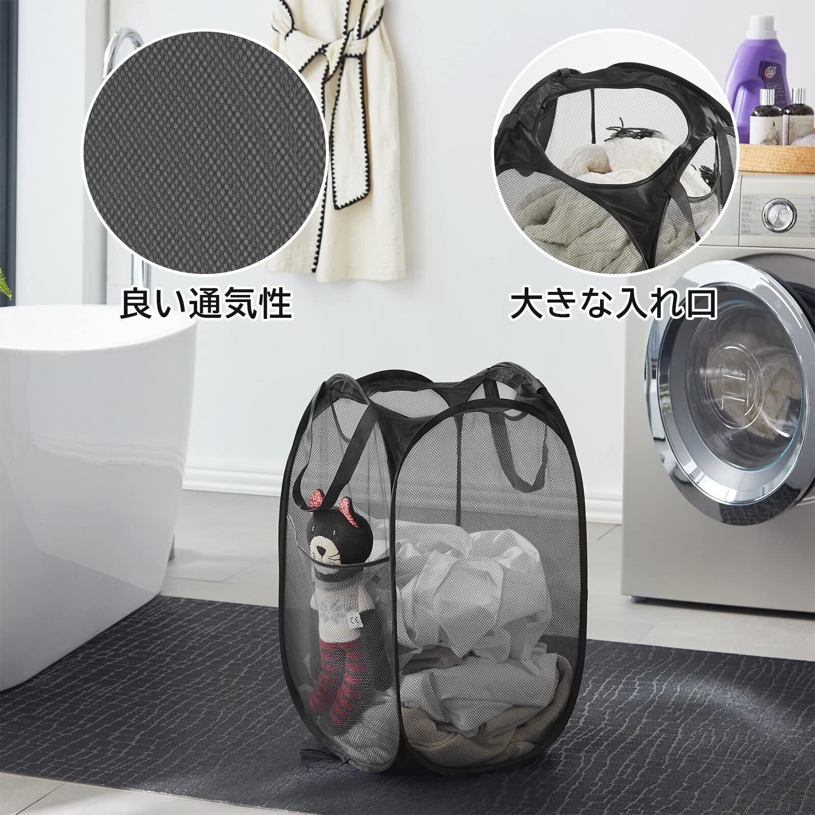 【新着商品】TECHMILLY ランドリーバスケット 折りたたみ 洗濯カゴ 大容量 71L メッシュ 省スペース ランドリーバッグ 収納 洗濯物 袋 かご 持ち運び可能 軽量 旅行 ゴミ箱 幅さ36CM長さ36CM高さ61CM (ブラック、1PCS)
