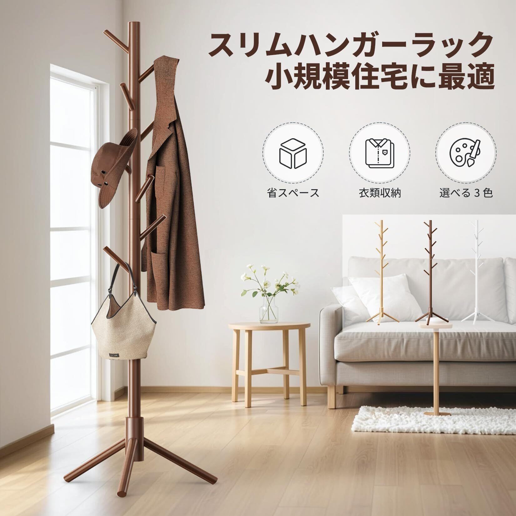 【在庫セール】Avocahom ポールハンガー 木製 コートハンガー かばん掛け ポール 子供 ハンガースリム 洋服掛けポール おしゃれ 帽子掛けスタンド バッグ掛け 8つフック 衣類収納 玄関ハンガー 高さ調節可能 高い安定感 高さ175cm 組立て簡単 玄関 リビング 寝室 (ブラウン)