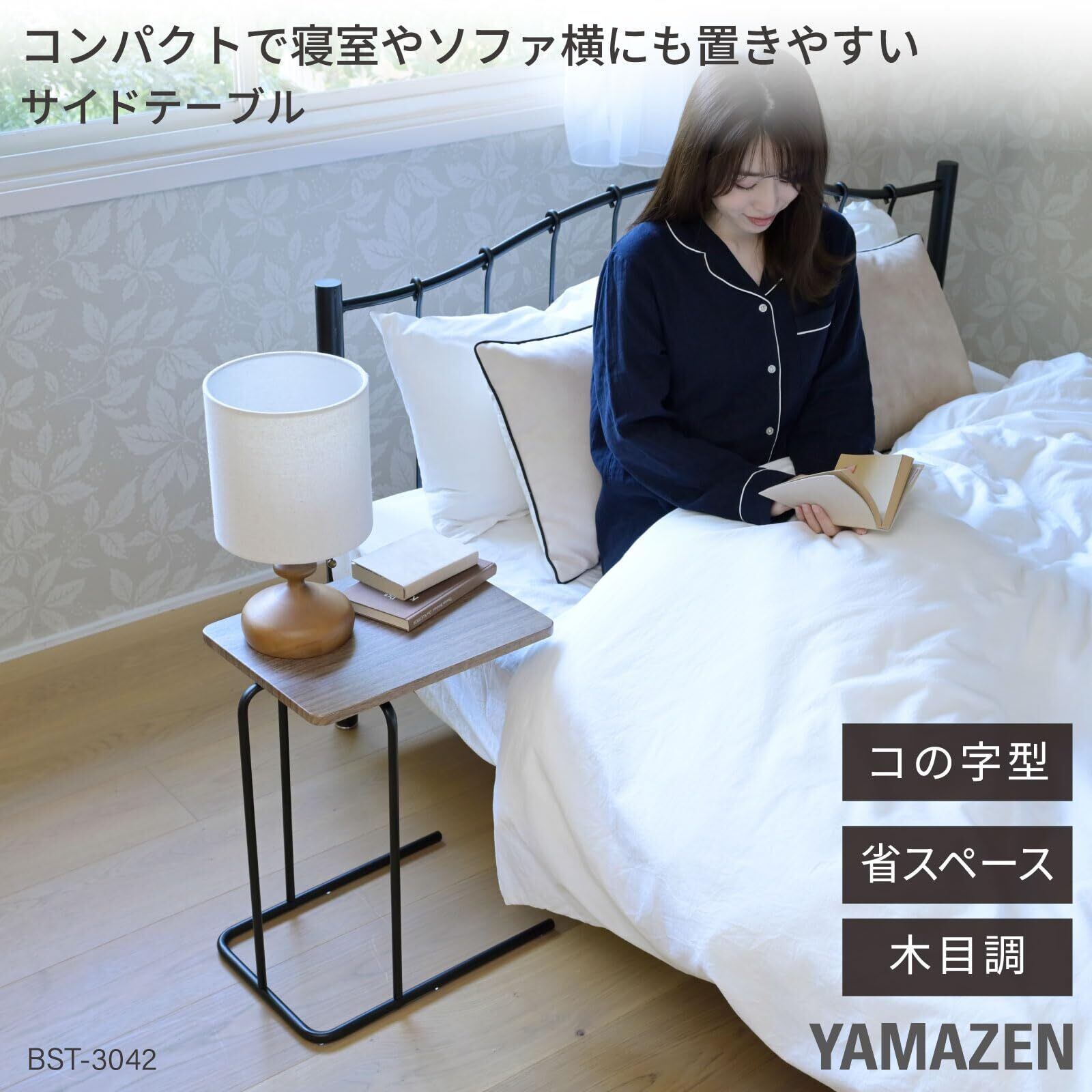 【人気商品】山善(YAMAZEN) サイドテーブル スリム ベッド横 コの字型 四角 黒 ベッドサイドテーブル コーヒーテーブル コンパクト 幅29.5×奥行42×高さ52cm 一人暮し 省スペース 組立品 ダークオーク/マットブラック BST-3042(DOK/MBK)