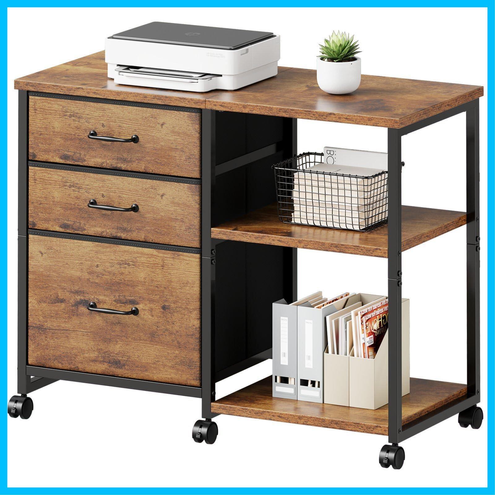 Maihail サイドキャビネット デスクワゴン 布製 袖机 層板付き サイドワゴン 3段 オフィスワゴン A4対応 プリンター台 大容量 キャスター付き デスク下収納 ビンテージ+ビンテージ
