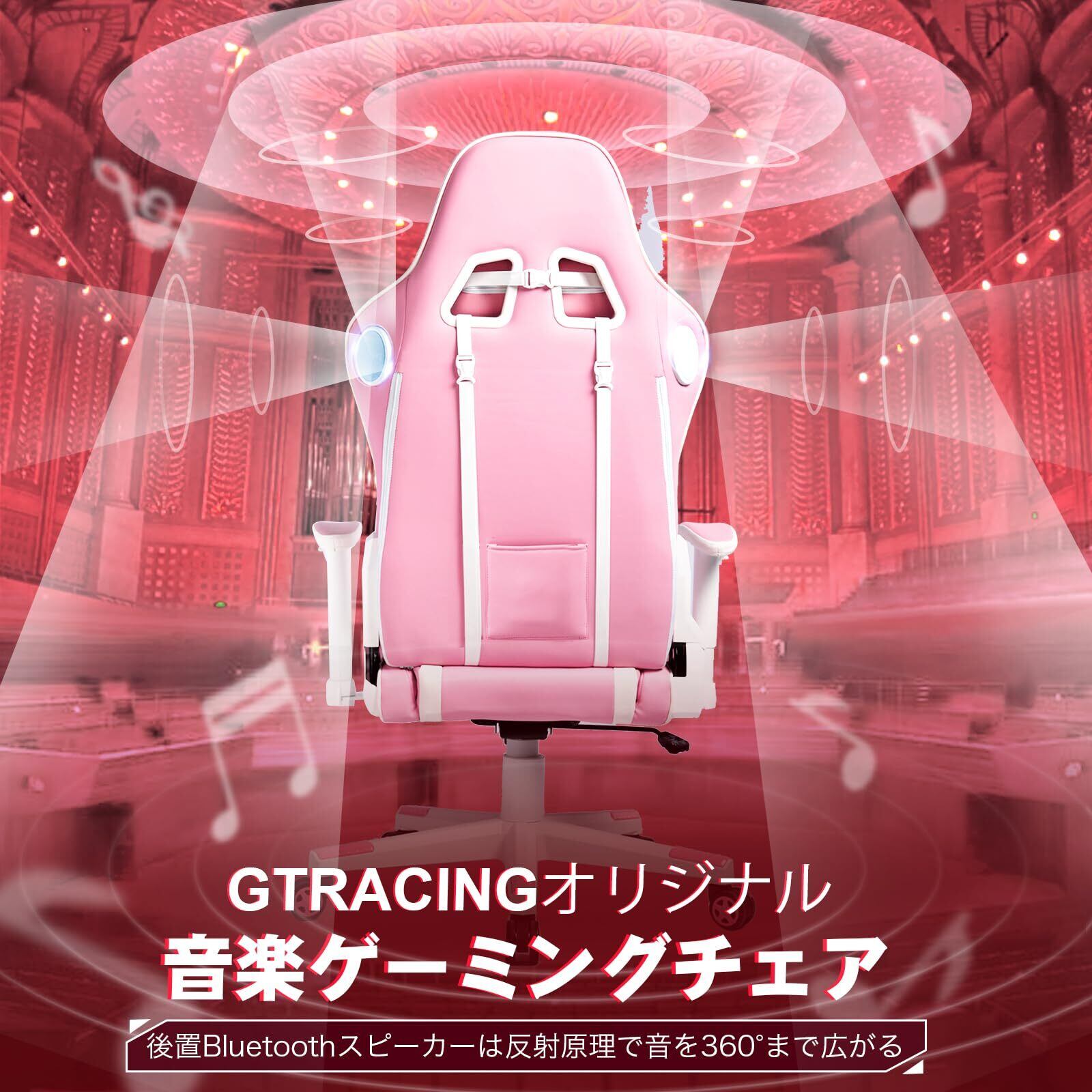 【在庫セール】GTRacing ゲーミングチェア オットマン スピーカー付き ゲームチェア ゲーム用チェア オフィスチェア フットレスト デスクチェア リクライニング パソコンチェア ハイバック 調節可能ランバーサポートPUレザー 「別途購入のGTRacing USBアダプタでチェアはPS4/PC/SWITCHとの相性が良くビンク GT890YJ-PINK