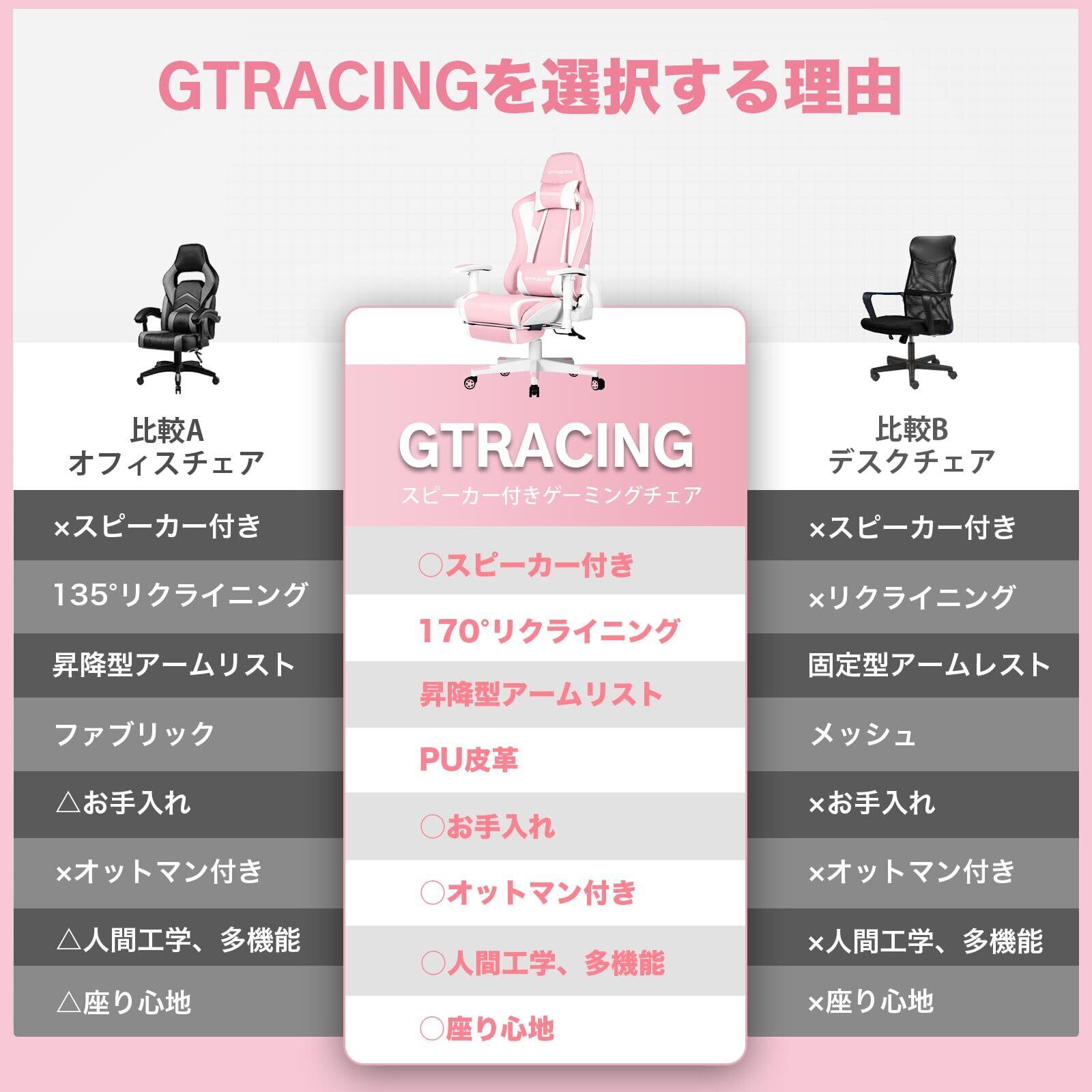 GTRacing ゲーミングチェア オットマン スピーカー付き ゲームチェア ゲーム用チェア オフィスチェア フットレスト デスクチェア リクライニング パソコンチェア ハイバック 調節可能ランバーサポートPUレザー 「別途購入のGTRacing USBアダプタでチェアはPS4/PC/SWITCHとの相性が良くビンク GT890YJ-PINK