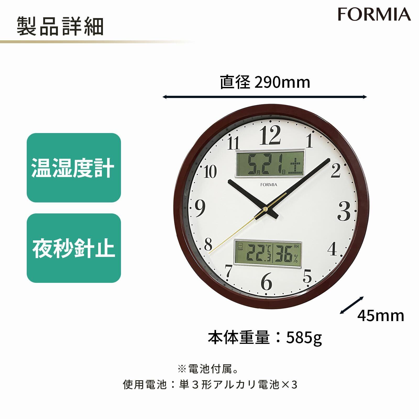 【新着商品】Formia(フォルミア) 掛時計 掛け時計 カレンダー 日付 曜日 温度 湿度 表示 連続秒針 静音 アナログ 直径29cm 保土ヶ谷電子販売 ブラウン HWC-028W-BR