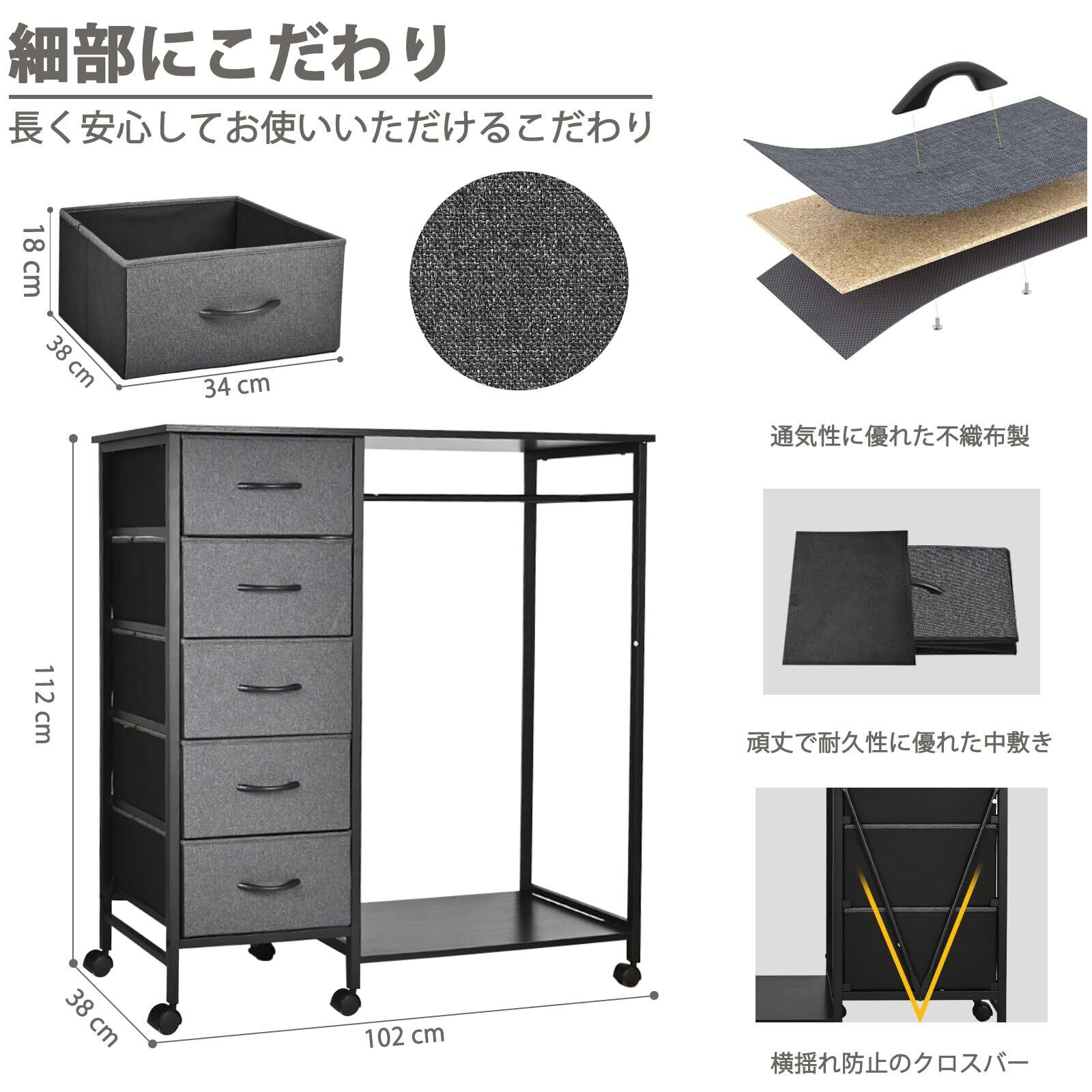 【新着商品】ハンガーラック 引き出し付き ワードローブ シングル チェスト キャスター付き ハンガー ラック 幅102×奥行40×高さ112cm 組立品 2年安心