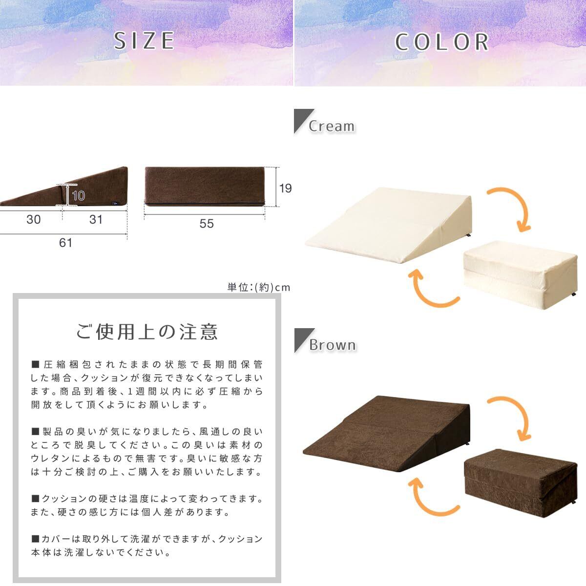 ottostyle.jp なだらか三角クッション 幅55cm テーブル 床ずれ防止 横寝 背もたれ ごろ寝 足枕 腰枕 介護 【ブラウン】