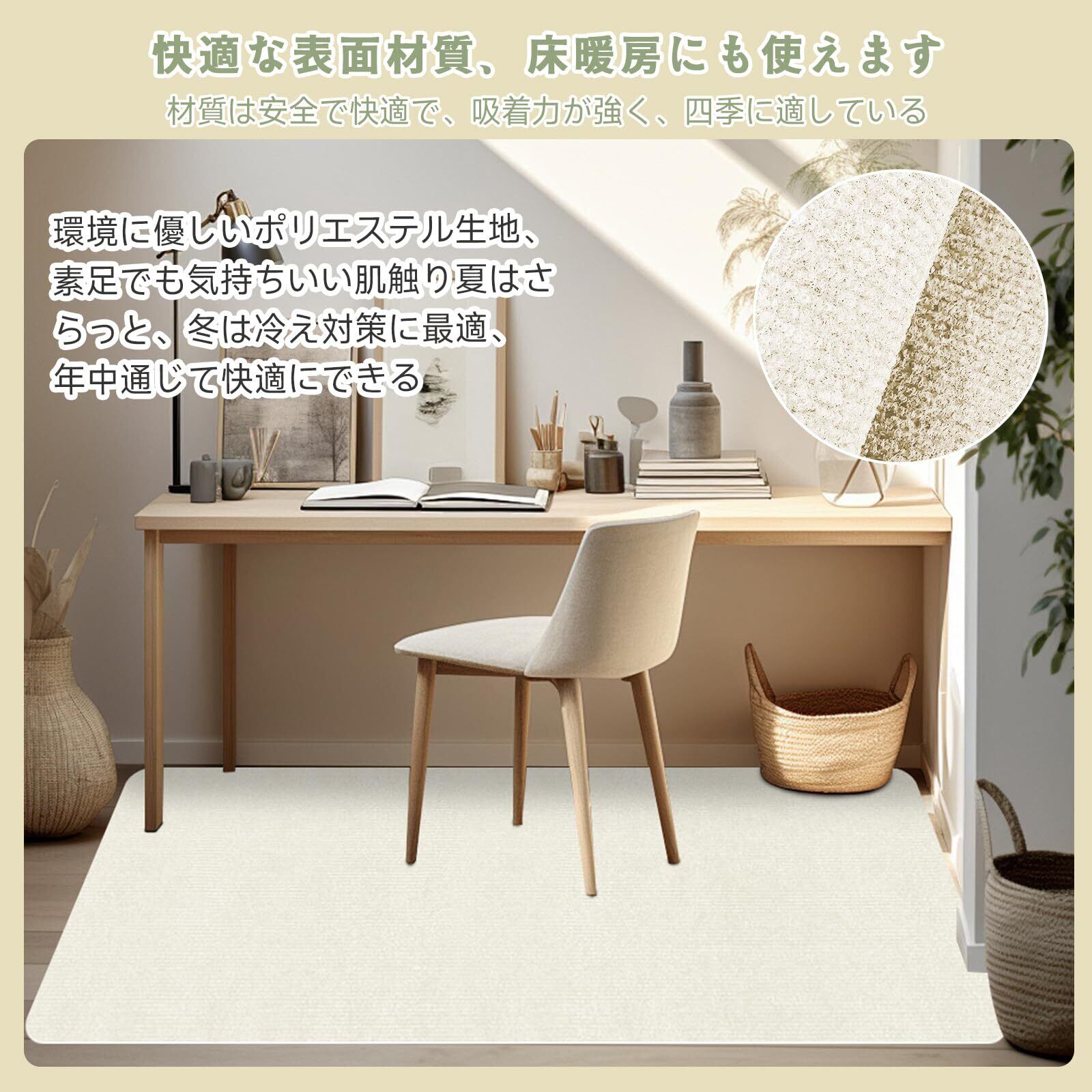 【 限定ブランド】Piiyoow 汎用チェアマット 140*100cm チェアマット、ゲーミングチェアマット、床保護マット、床 傷 防止 マット、防音、丈夫で実用的、床を保護、床擦れを軽減、適度な厚み、滑り止め、シンプルでスタイリッシュ、防音効果、カットしやすい、家庭やオフィスの床に適している[クリームホワイト]