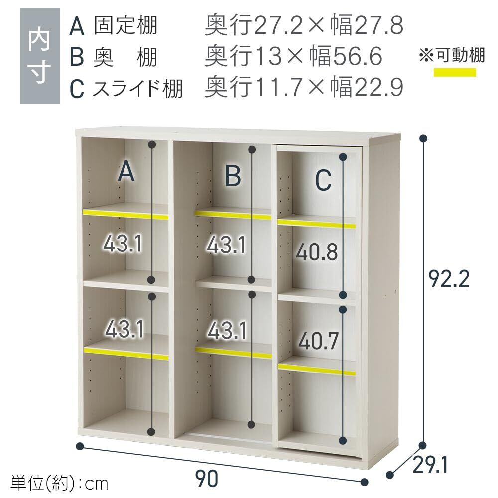 アイリスオーヤマ 本棚 幅約90×奥行約29.2×高さ約92.2cm スライド棚 オープンラック 大容量 組立品 ホワイト シングル CSS-9090