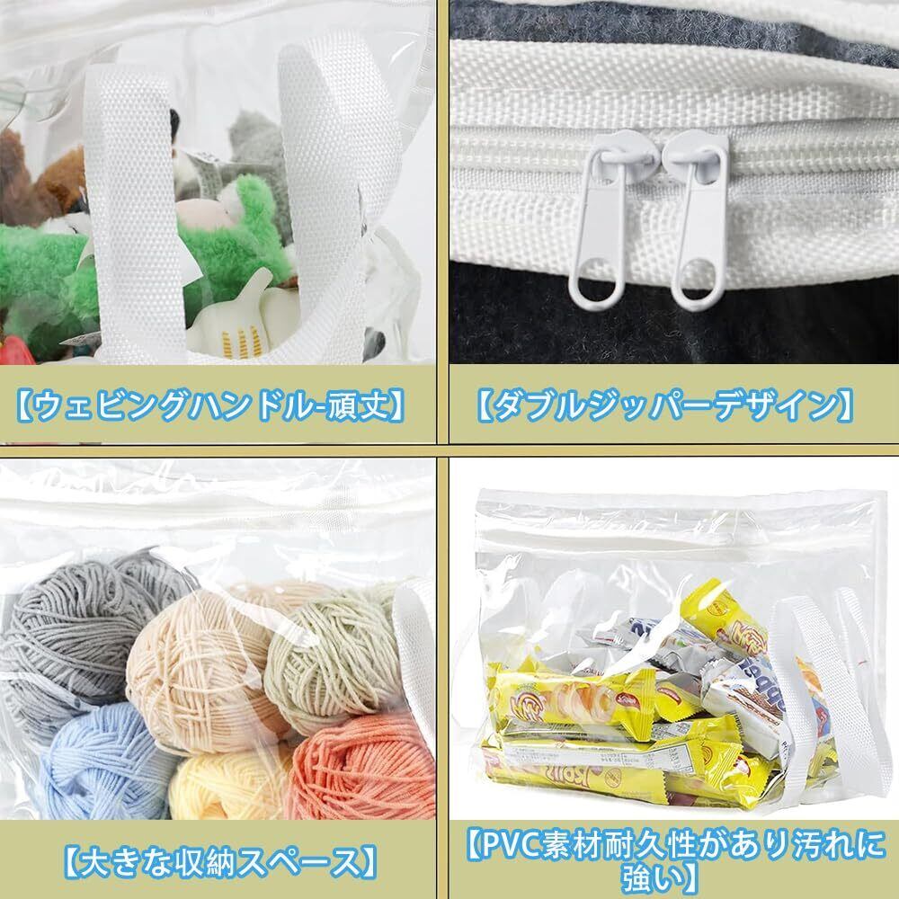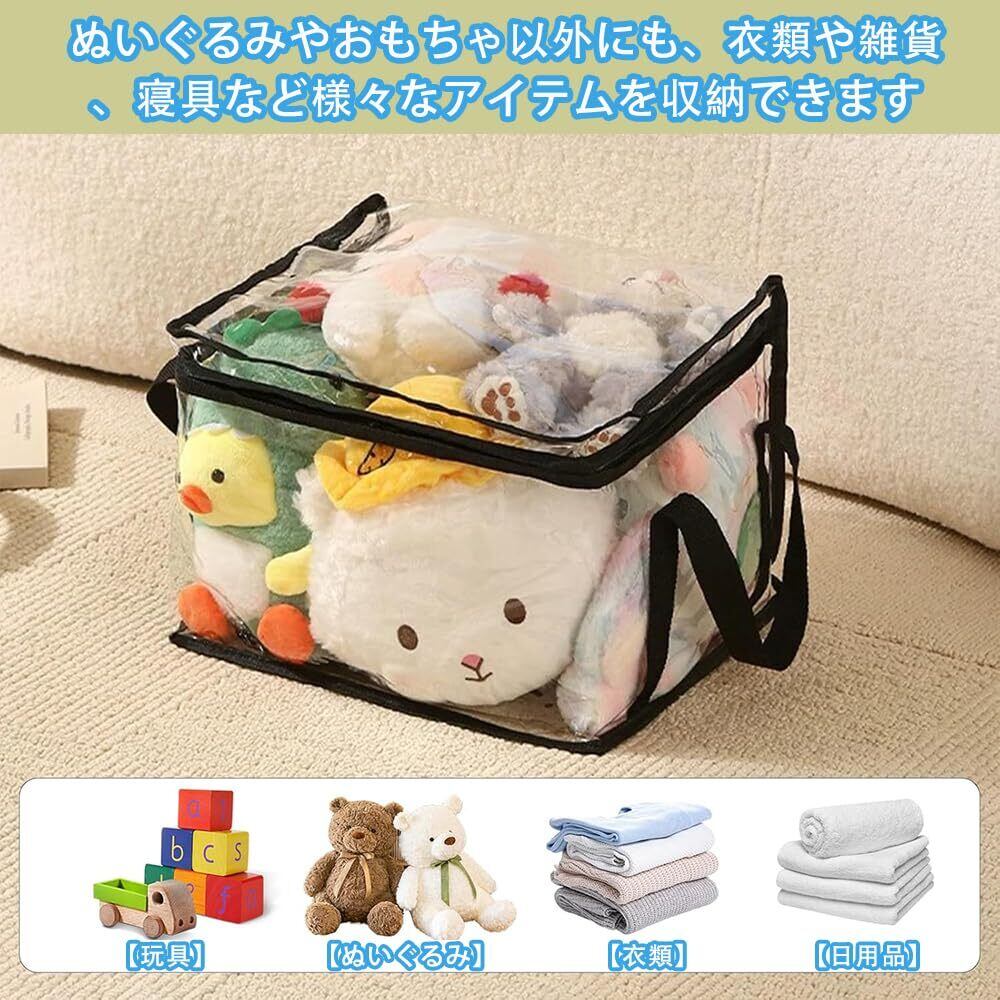 ぬいぐるみ収納袋 透明おもちゃ収納 持ち手付き 収納ケース 大容量 防水 防塵 防湿 折りたたみ 収納ボックス 衣類収納 雑貨収納 子供部屋収納 多機能 雑誌 書類 収納ポケット 整理整頓ファスナー付き (ホワイト*2)