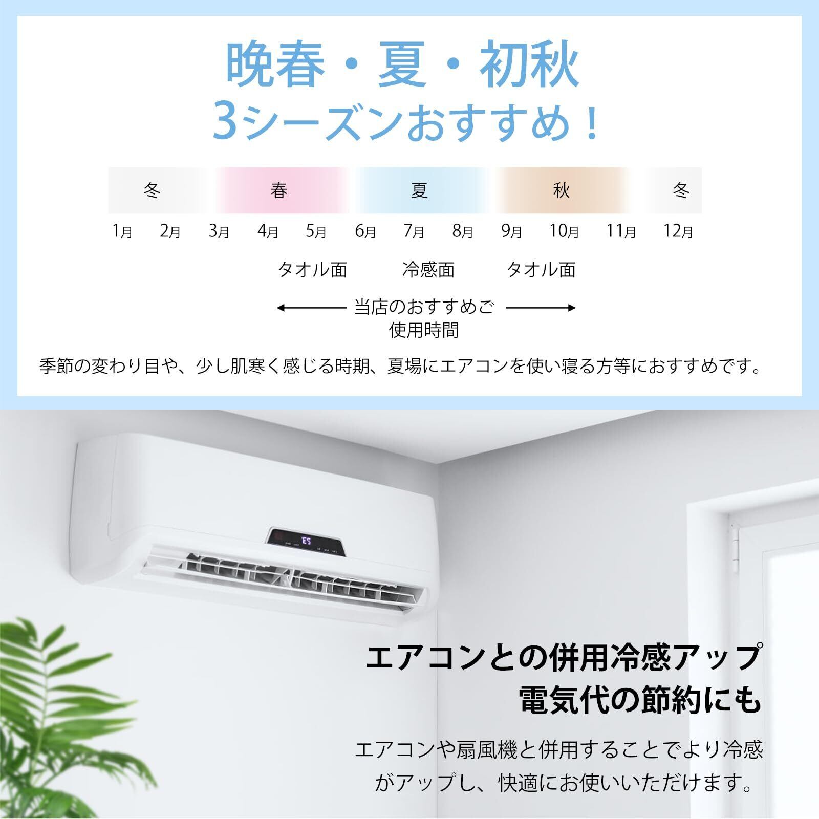 特徴 パイルが抜けにくい, 両面タイプタオルケット, 丸洗いOK, 吸湿速乾, 接触冷感