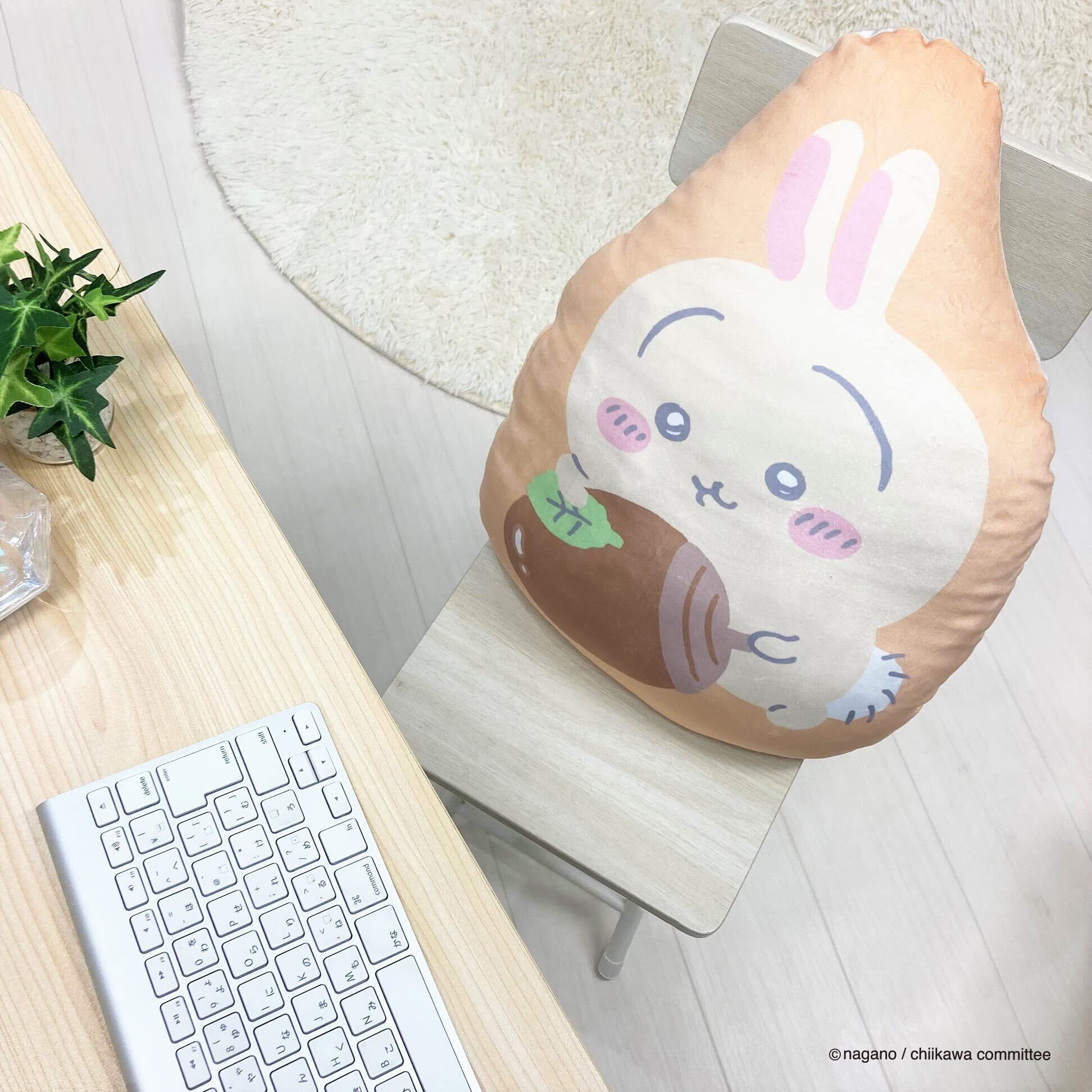 MORIPiLO 抱き枕 ちいかわ うさぎ (ダイカットクッション) 肌にやさしいマイクロ生地 グッズ ぬいぐるみ 昼寝枕 ベージュ 34x45x10cm キャラクター まくらのモリシタ