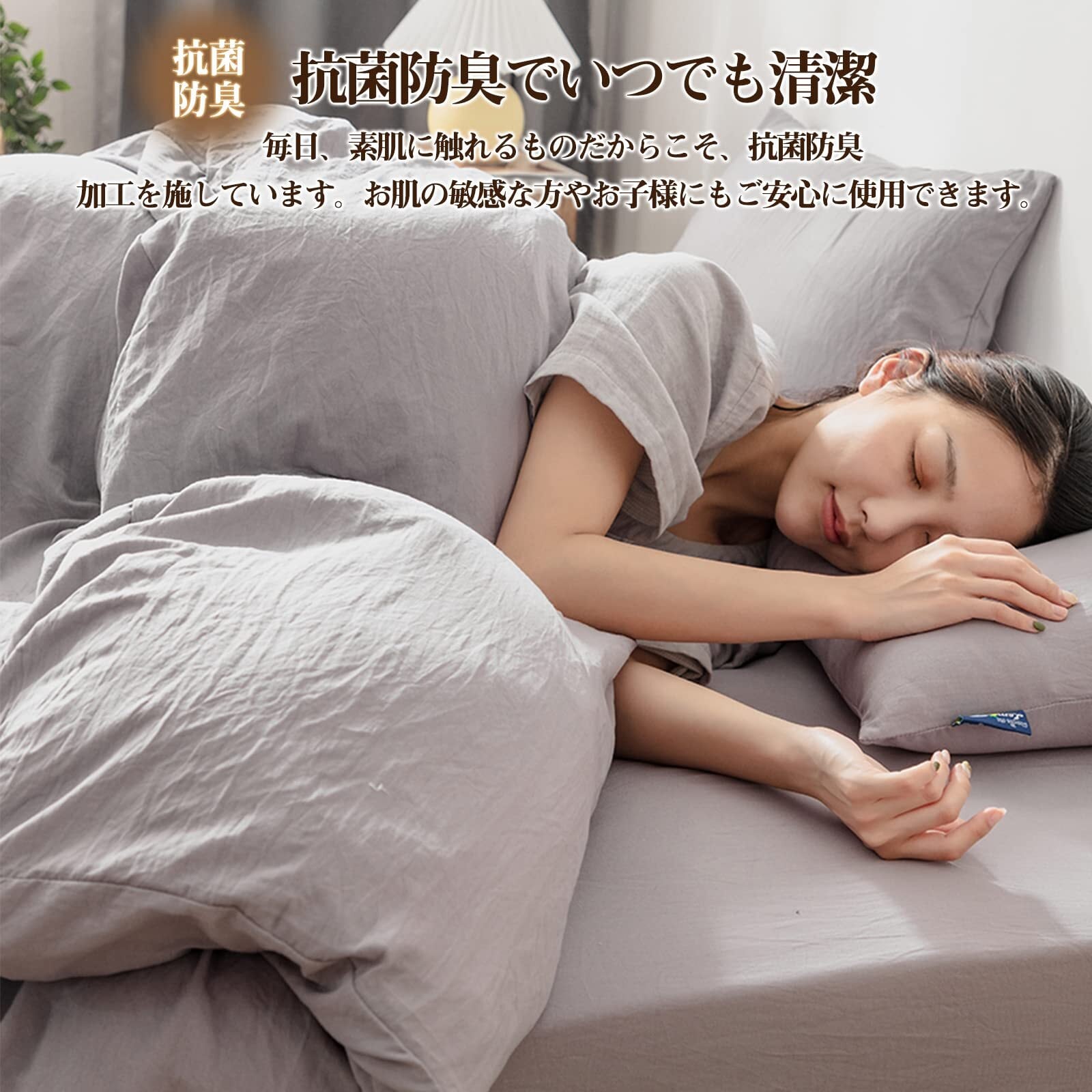【通気性抜群&オールシーズン使える】水洗い加工で普通のベッドシーツと比べ、優れた吸湿性と通気性で、汗でもベタつかないサラサラ感を保ちます。ムレにくく、春夏秋はサラサラ、冬は暖かくて1年中快適にお休みいただけます。 丁寧に織り上げることにより、耐久性にも優れたしっかりとした生地に仕上がりました。