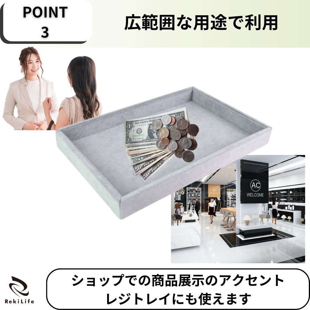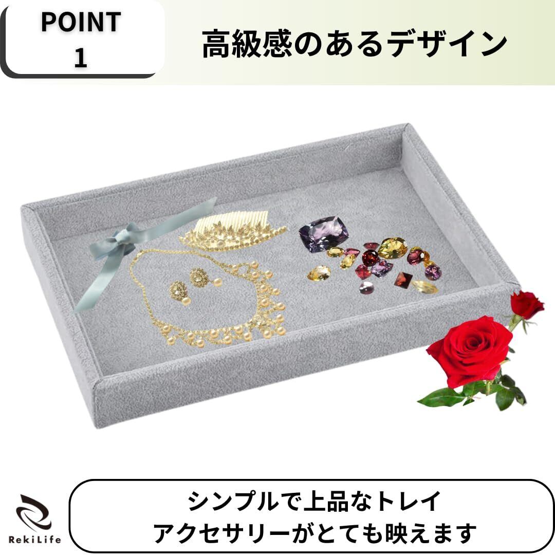RekiLife アクセサリートレイ おしゃれ ジュエリートレイ 小物置き ベロア トレイ グレー (Mサイズ(30㎝×21㎝×3㎝))