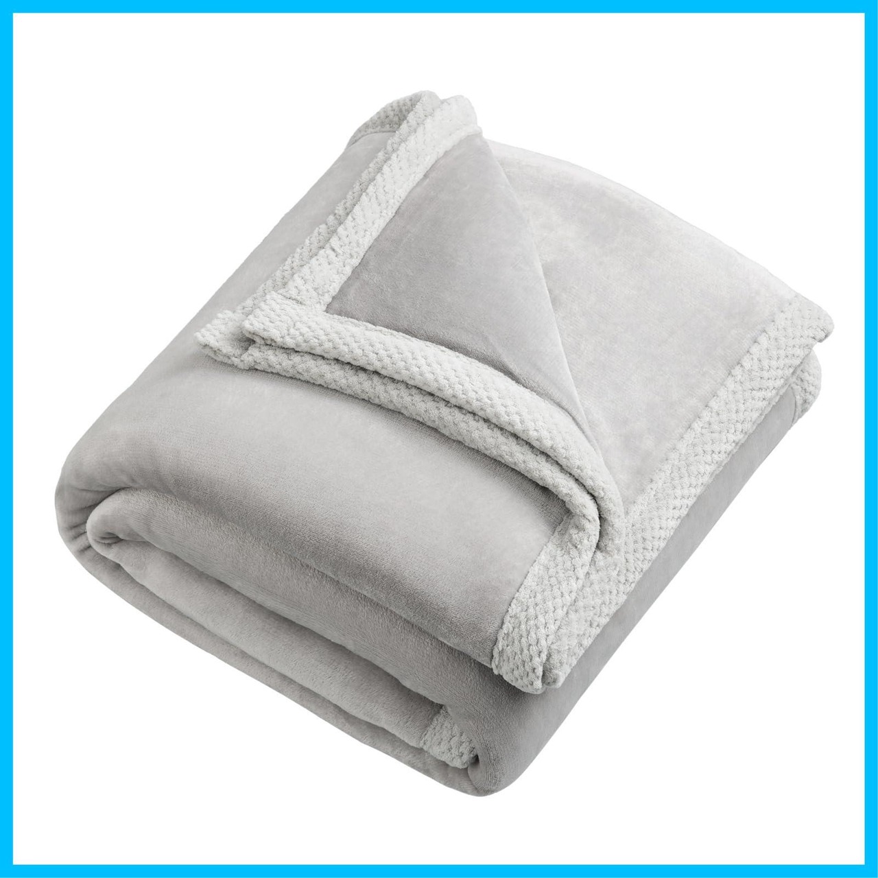 Phantoscope 毛布 薄手 春用 蓄熱中綿充填 2枚合わせ 多層構造 暖かい ふわふわ 柔らかい フランネル 両面使える 静電気防止 軽量 保温 吸湿発熱 洗える ブランケット おしゃれ 180×200cm ライトグレー