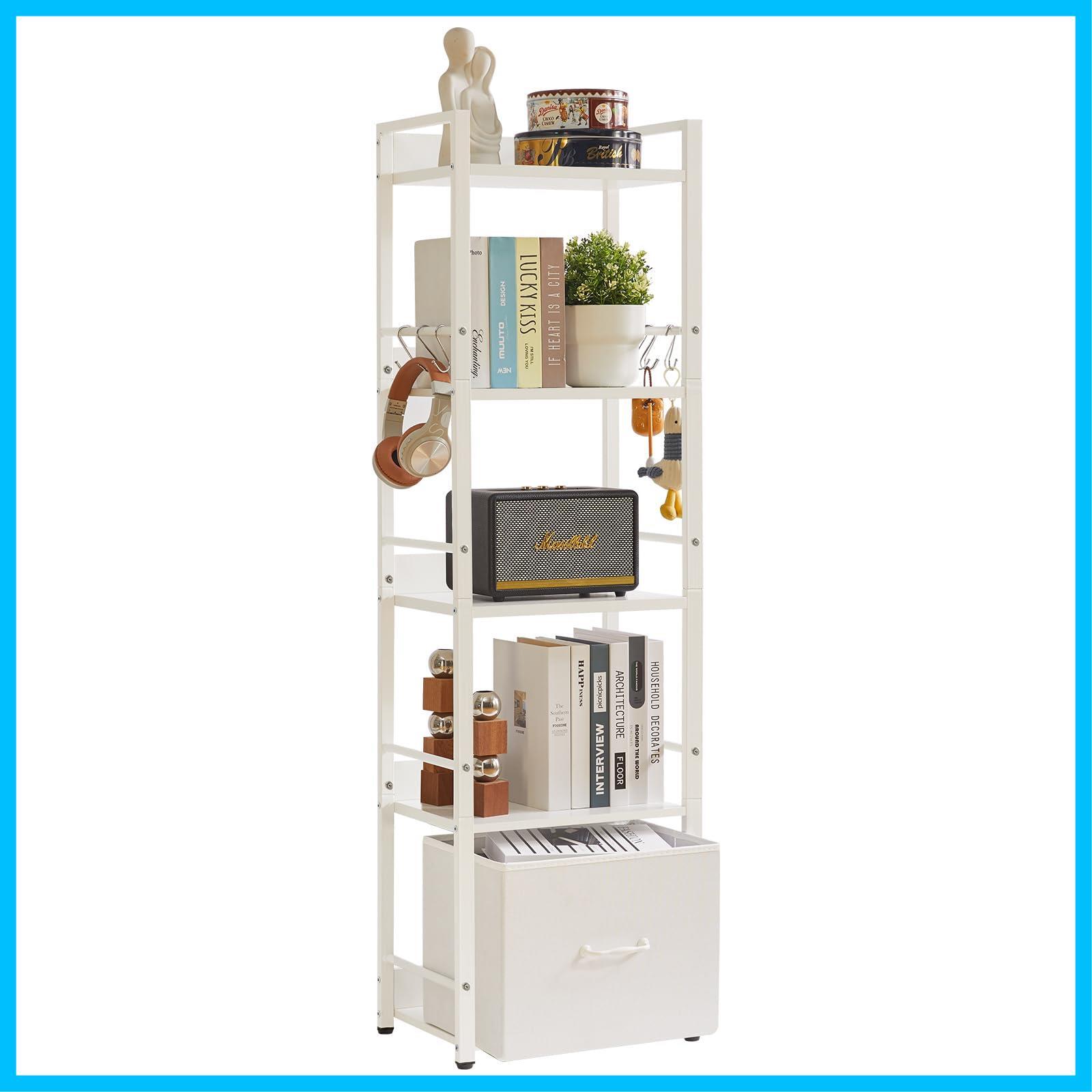 省スペース: このスリムな本棚には5つの棚があります。コンパクトで大容量な設計なので、床面積をあまりとりません。このおしゃれ本棚を使って、お気に入りの本、工芸品、写真アルバム、鉢植えなどを置くことができます。必需品や装飾品の保管や展示に最適です