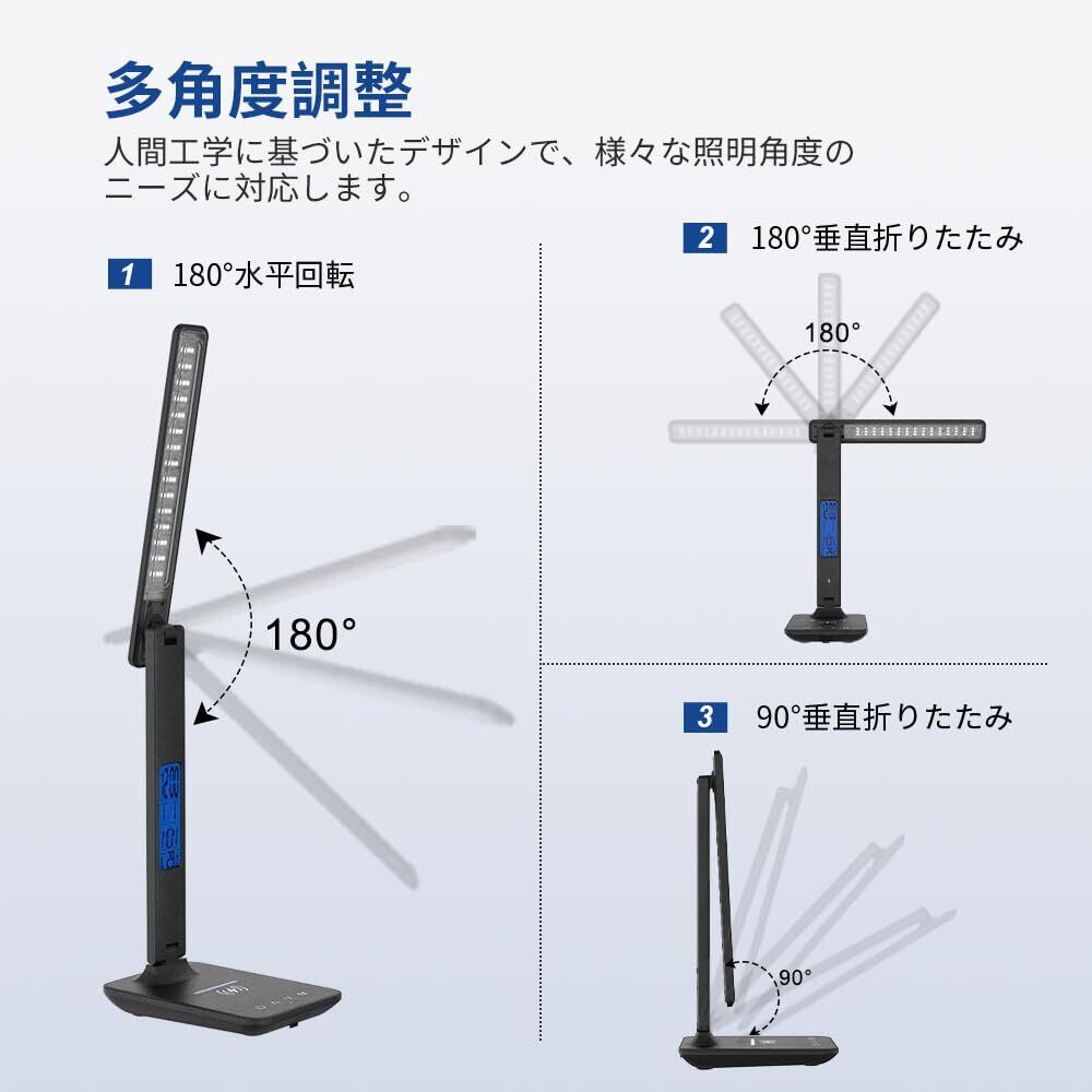 Legula LEDデスクライト 多機能折りたたみ 時計、アラーム、温度表示機能&スマホスタンド テーブルランプ 三色温 5段階調光電気スタンド コンパクトで便利な卓上ライト 勉強 読書 寝室 子供部屋 自然光 目にやさしい読書灯(黑)