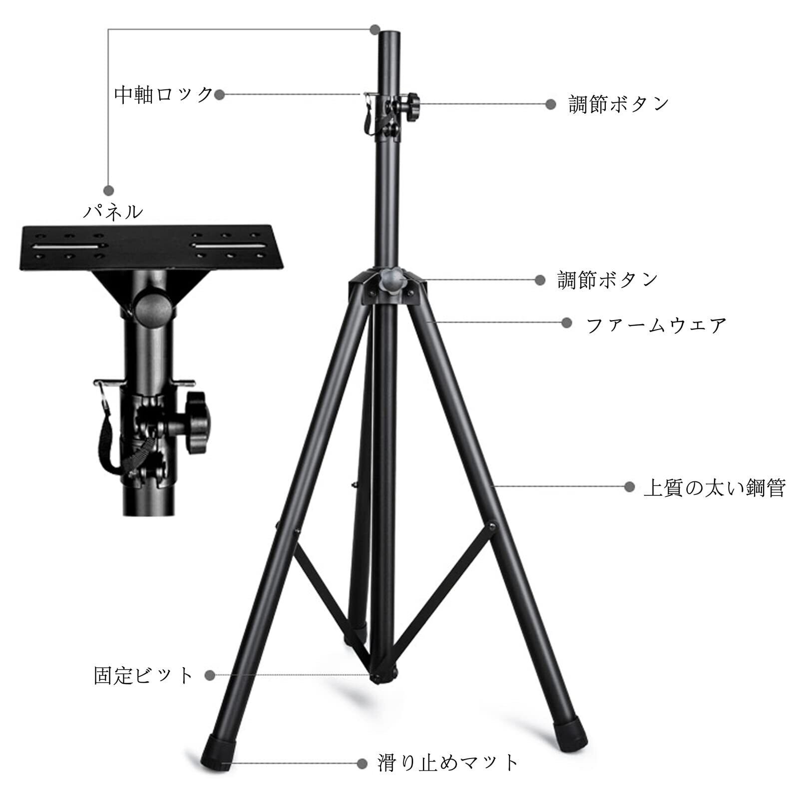 【特価商品】BQKOZFIN 2本セット スピーカースタンド 高さ100~200cm調節可能 折りたたみ式 スピーカー用 取付 金具 荷重40kg
