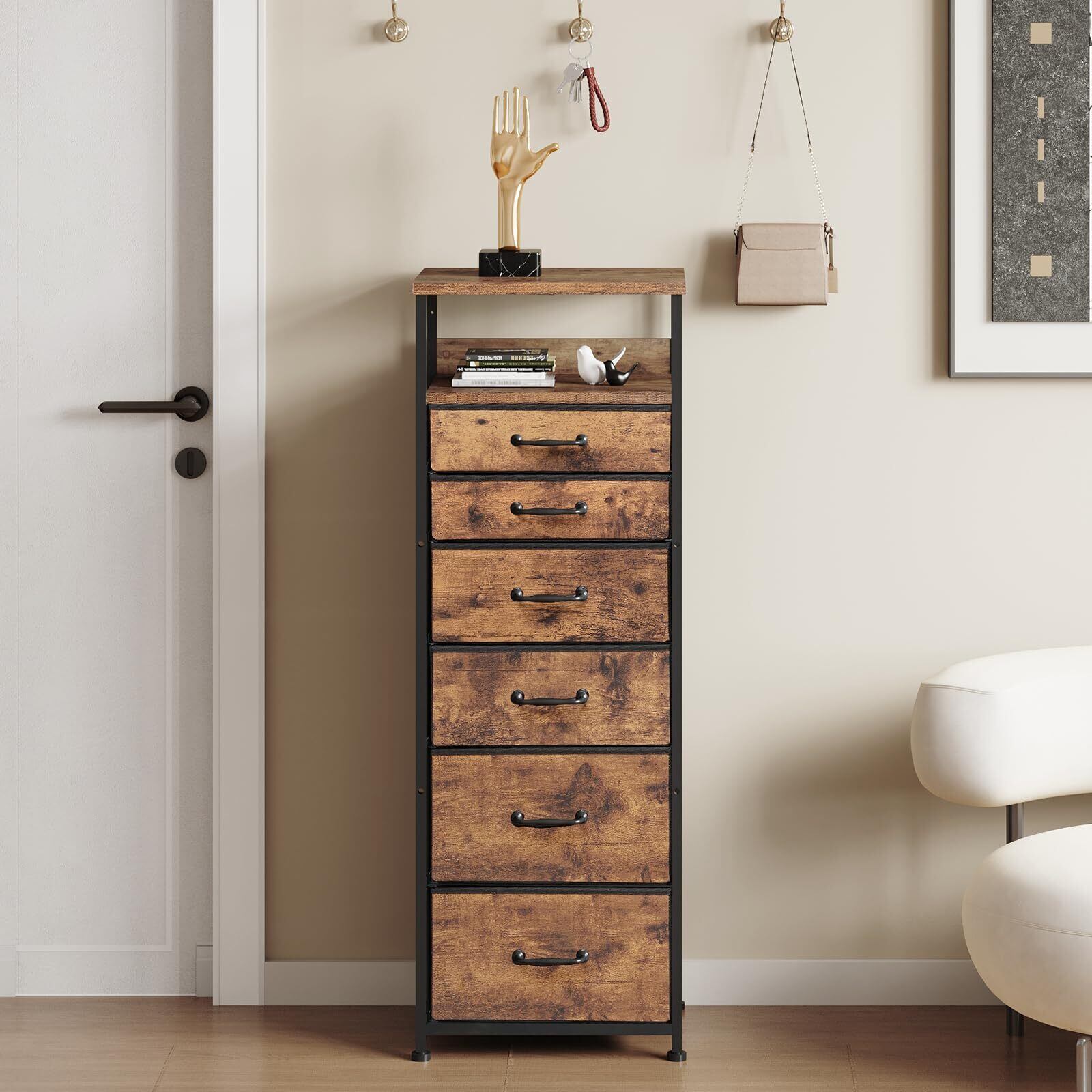 YeTom チェスト 7段6杯 タンス 収納チェスト スリム 洋服タンス たんす 箪笥 衣類収納 引き出し付き おしゃれ 収納ケース おしゃれ スリム 脱衣所収納 大容量 天板付き 40*30*113.5cm ピンテージ | ROOMin