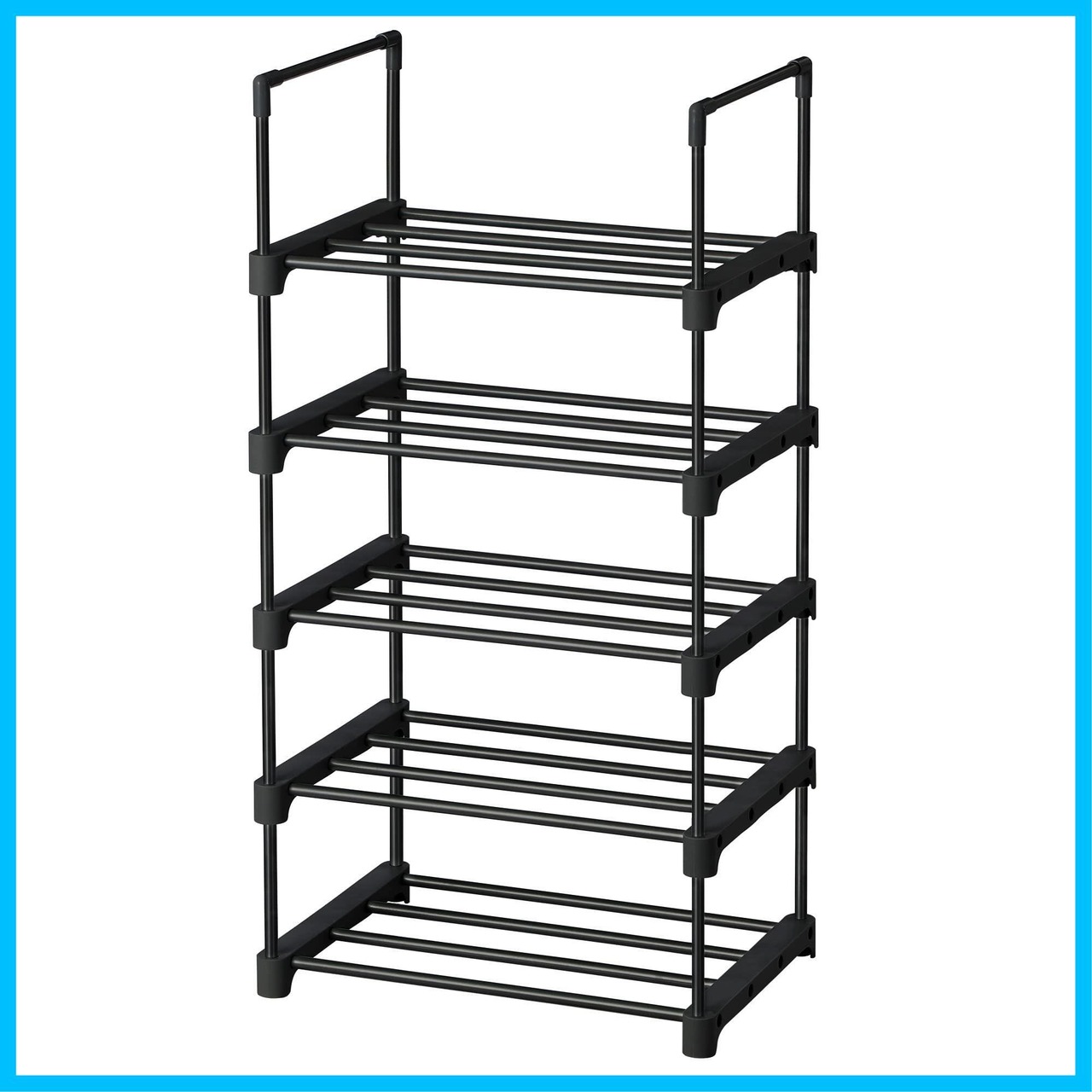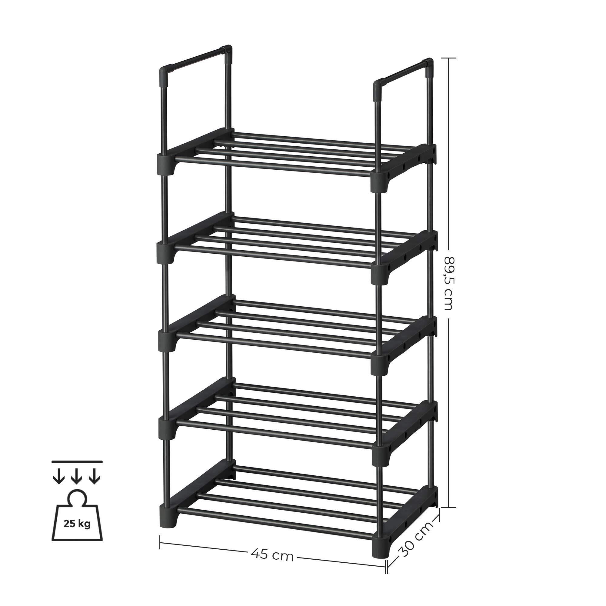 【在庫処分】SONGMICS シューズラック 5段 収納 大容量 スリム 靴箱 省スペース分割可 玄関すっきり ブラック LSA005B02