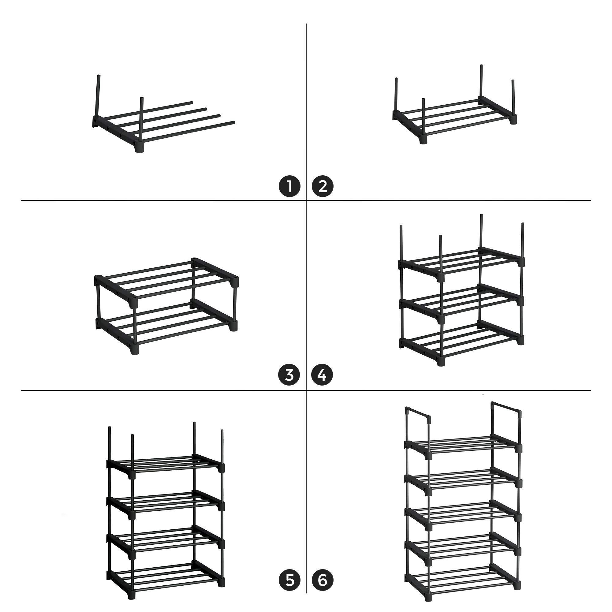 SONGMICS シューズラック 5段 収納 大容量 スリム 靴箱 省スペース分割可 玄関すっきり ブラック LSA005B02