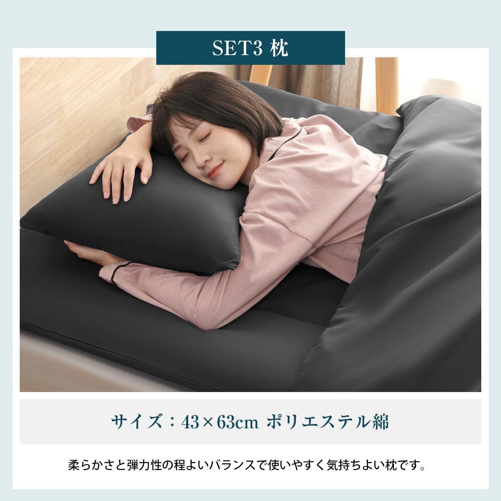 【枕】サイズ:幅63×奥行43cm 側生地:ポリエステル100%(ピーチスキン加工・抗菌防臭加工) 詰め物:ポリエステル綿100% 詰め物重量:約0.5kg