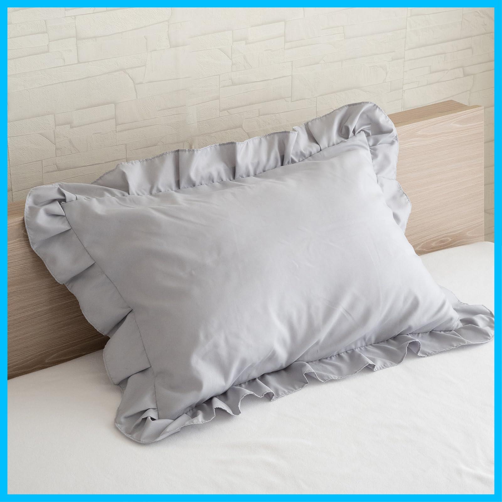 シルフィーズ 枕カバー 45×65cm 封筒型 フリル 大人可愛い オールシーズン 洗える 柔らか おしゃれ 無地 グレー