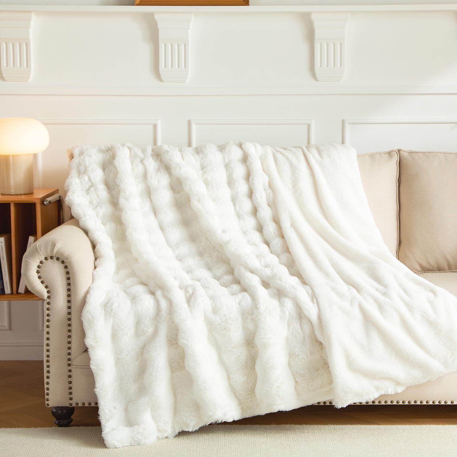 Haguko 毛布 ふわとろ シングル ブランケット ハーフケット モコモコ ふわふわ おしゃれ 暖かい ぽこぽこ 可愛い もふもふ 洗える 小さめ (100x160,スノーホワイト)