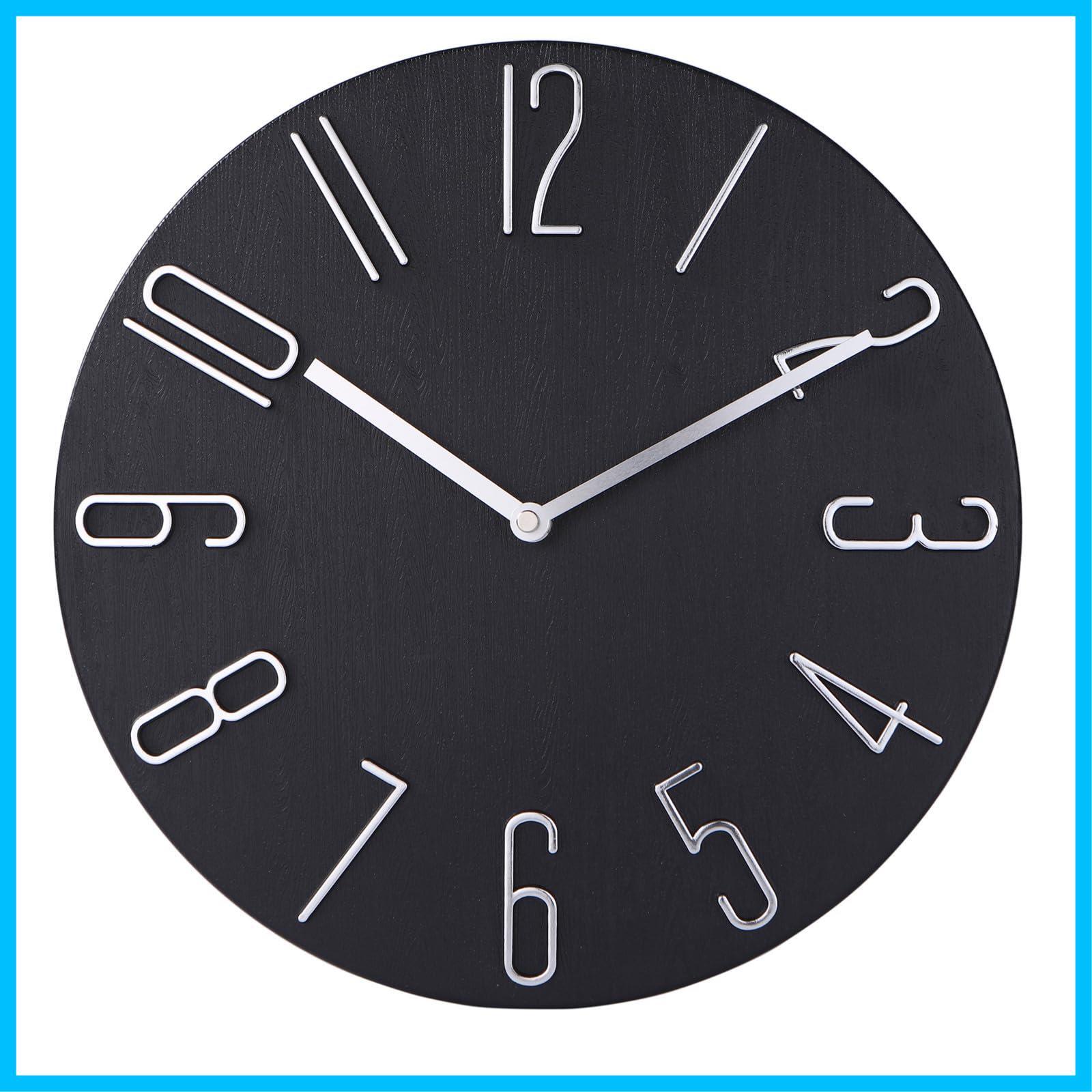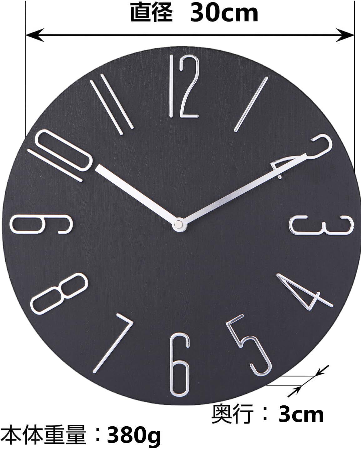 Nbdeal 掛け時計 静音 連続秒針 直径30cm おしゃれ 軽い 壁掛け時計 北欧 音がしない 非電波 ブラック