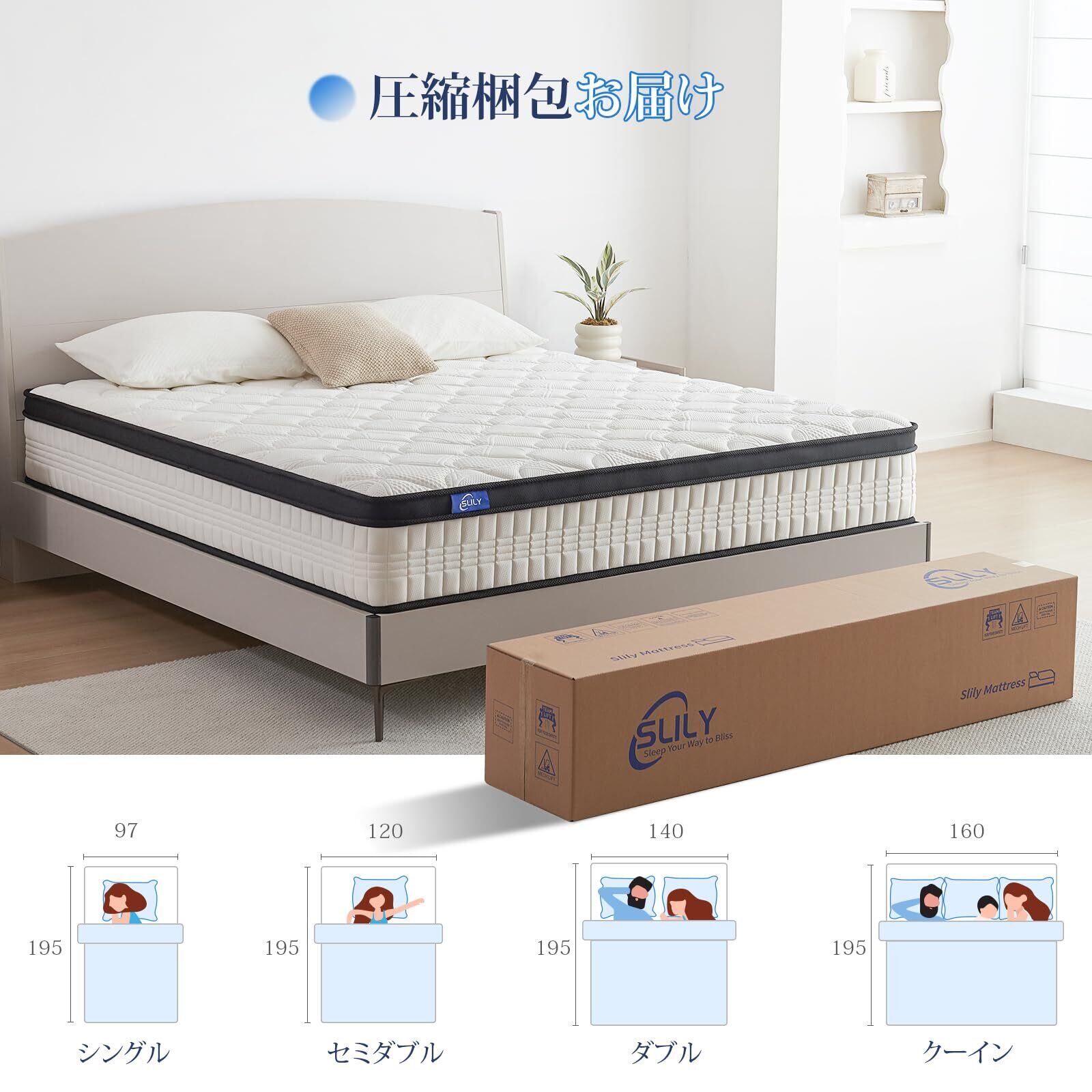 Slily マットレス セミダブル 硬め ポケットコイルマットレス 極厚22cm 高反発ウレタン 高密度コイル 体圧分散 耐久性 メモリーフォーム 温度調節 底付き感無し 快適な寝心地 静音仕様 ベッドマットレス ホワイト×ブラック(120×195×22cm)