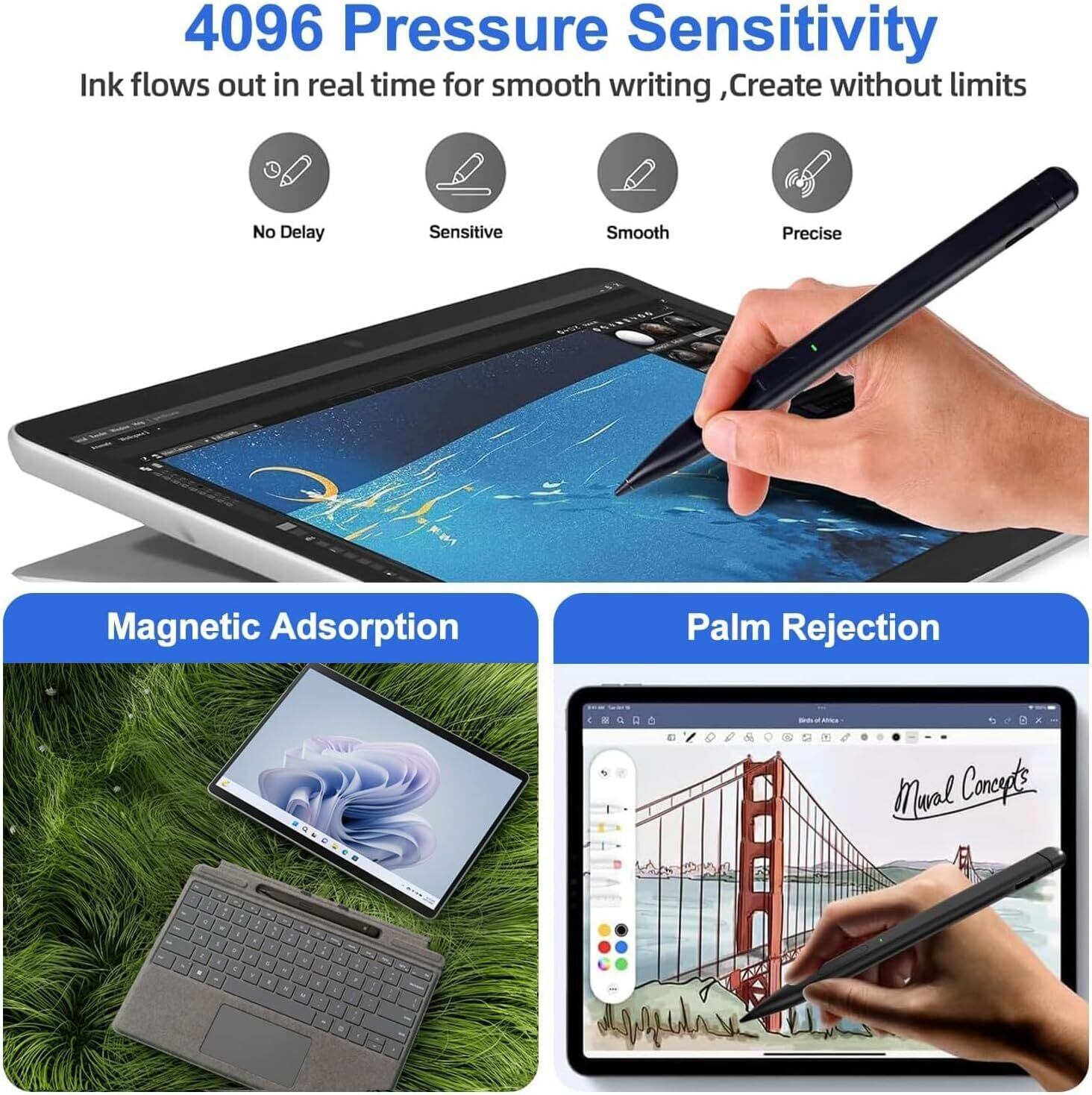 Surface ペン タッチペン 用 マイクロソフト - 4096圧力感度サーフェス ペン スタイラス Surface Pro 11/10/9/X/8/7/6/5/4/3, Surface Book/Laptop/Go/Studioなどに対応 磁気吸着機能 高速充電 パームリジェクション機能タブレット用 タッチペン