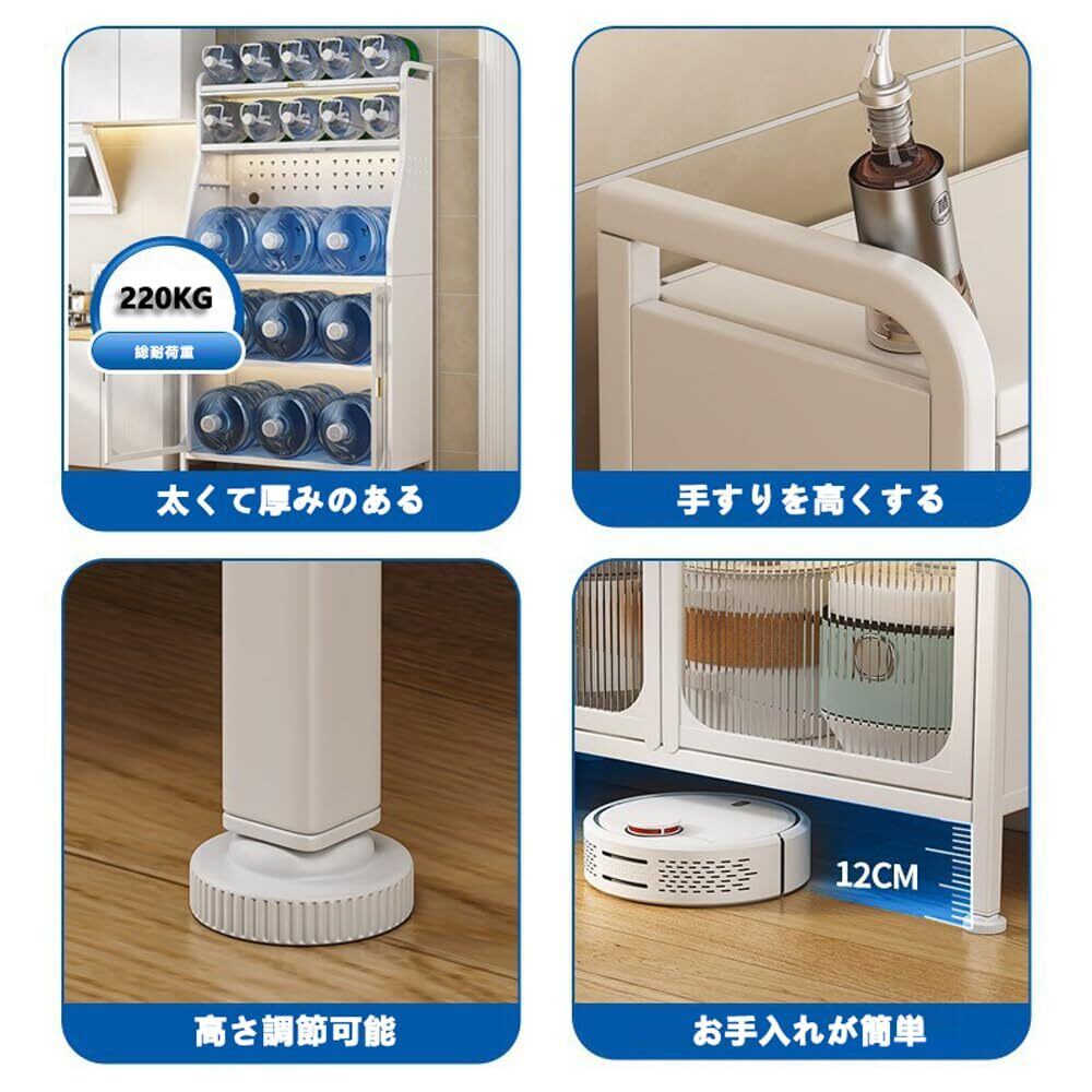 【優れた製造】:食器棚 キャスター付き、は厳選された炭素鋼と磁気性ドアを採用し、表面は焼付塗装を3層施し、8つの抗酸化処理で錆や汚れを防止します。大胆で厚みがあり、耐荷重性が高く、強い圧力下でも変形せず、安定して揺れません。 従来の竹製キャビネットに比べ、安定性と耐久性に優れ、傷つきにくいのが特徴です。四方密閉設計、防塵・防鼠丨密閉収納。直径5.0cmのプラグイン穴、ほとんどのプラグを通すことができます。バックパネルを取り外す必要はありません。食器棚の脚は2種類もあり、360°回転できるキャスターと高さ微調整脚を場合によってお使いいただけます。調整脚は組み立てができて揺れを感じたら、4つの脚とも回して高さを微調整して、4つの脚を全部地面にピッタリ立てば、たとえ平たいでない地面でも揺れなく使用できます。