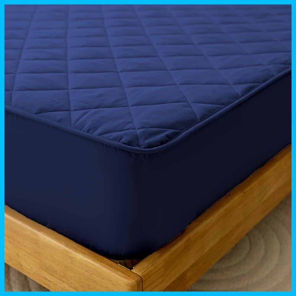 敷きパッド一体型ボックスシーツ クイーン 吸湿通気 柔らかい 中綿入り 全周ゴムバンド付 オールシーズン 抗菌防臭 マチ部分30cm 着脱簡単 ズレない 洗える 速乾 (ネイビー, 160*200㎝)