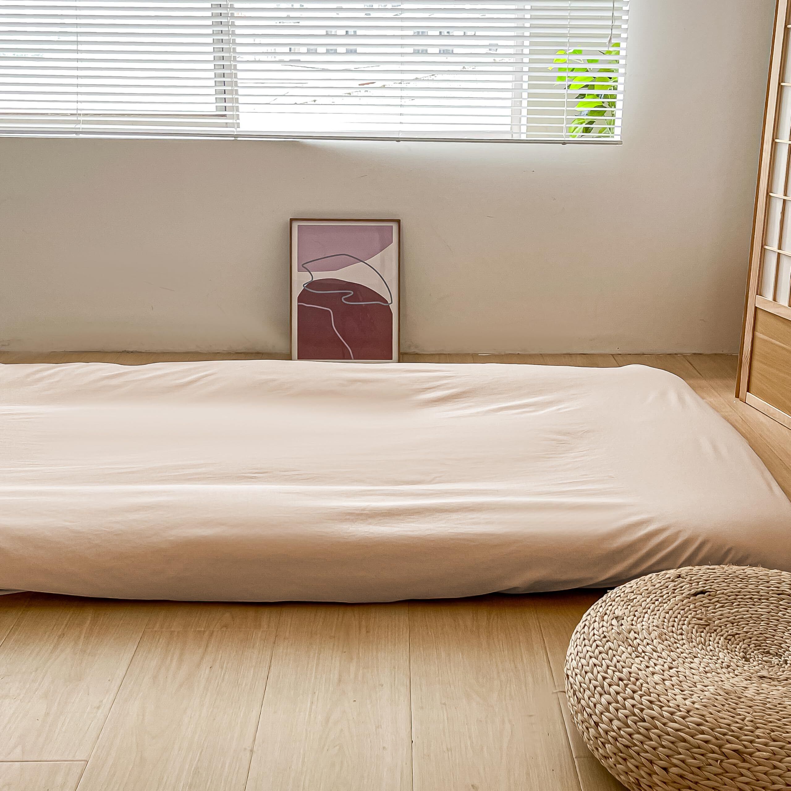 シンプルで落ち着いたエクルベージュの色合いは、どんな寝室にもマッチしやすく、インテリアの邪魔をしません。寝具を替えることで新しい気分にすることができ、お部屋を心地よく演出します。