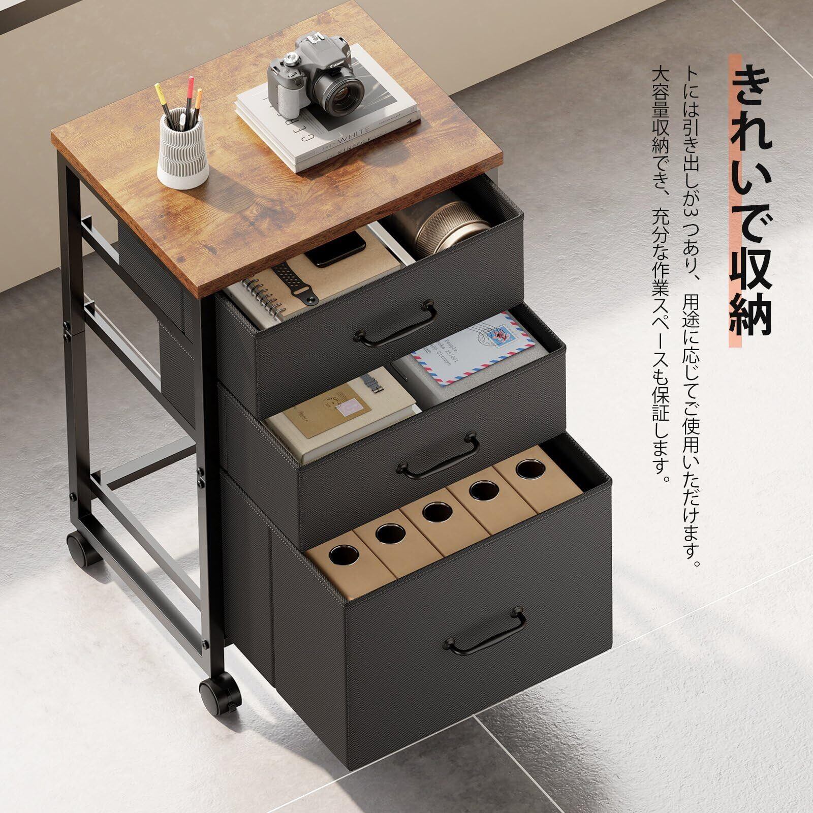 【在庫処分】Maihail デスクワゴン サイドワゴン キャビネット オフィスワゴン 布製 袖机 キャスター付き 3段 A4対応 大容量 デスク下収納 柜子 幅390*奥行300*高さ680mm ビンテージ