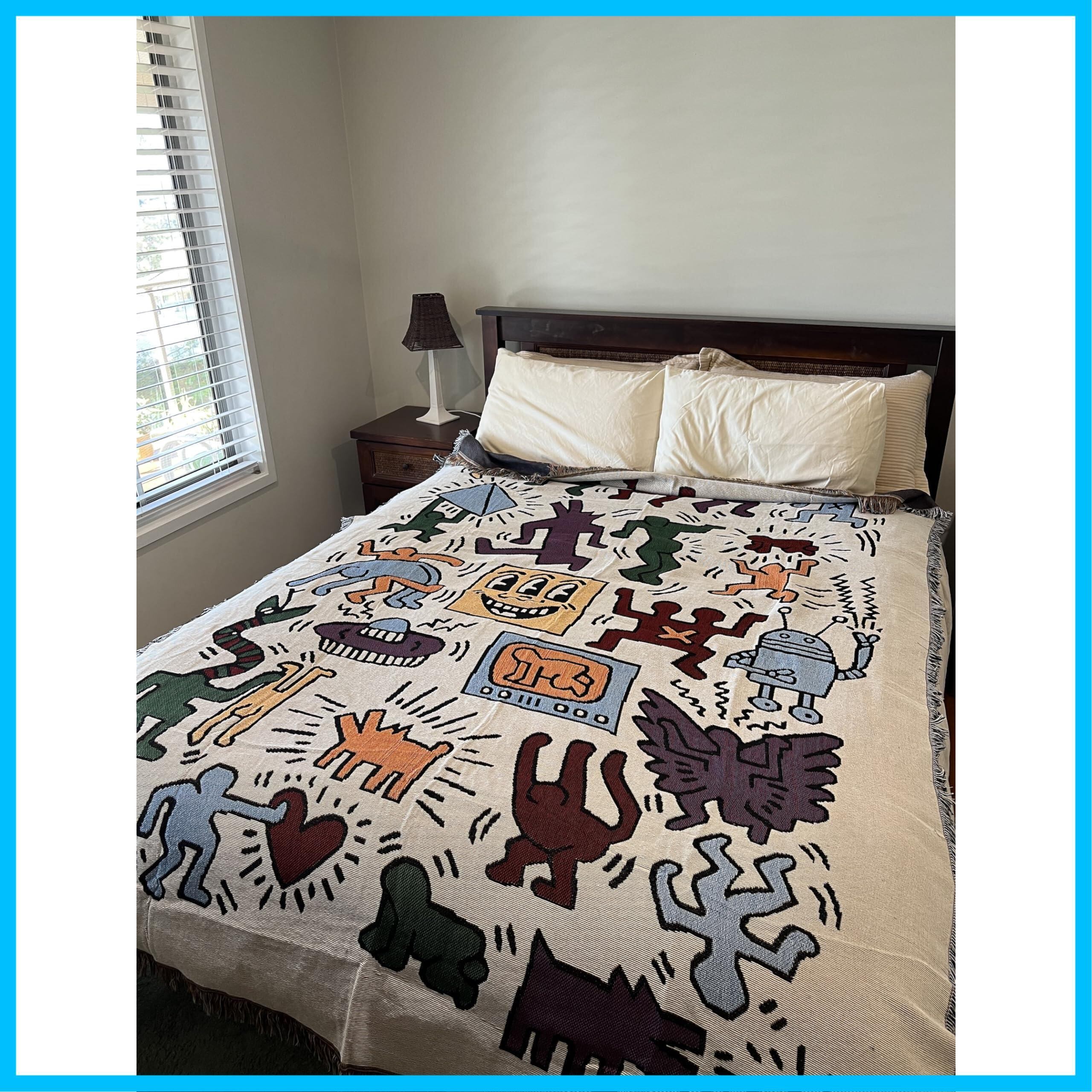 Peel Forest 【人気】 Keith Haring (キース・ヘリング), 人間柄 落書き ブランケット, ベッドカバー,160X220cm