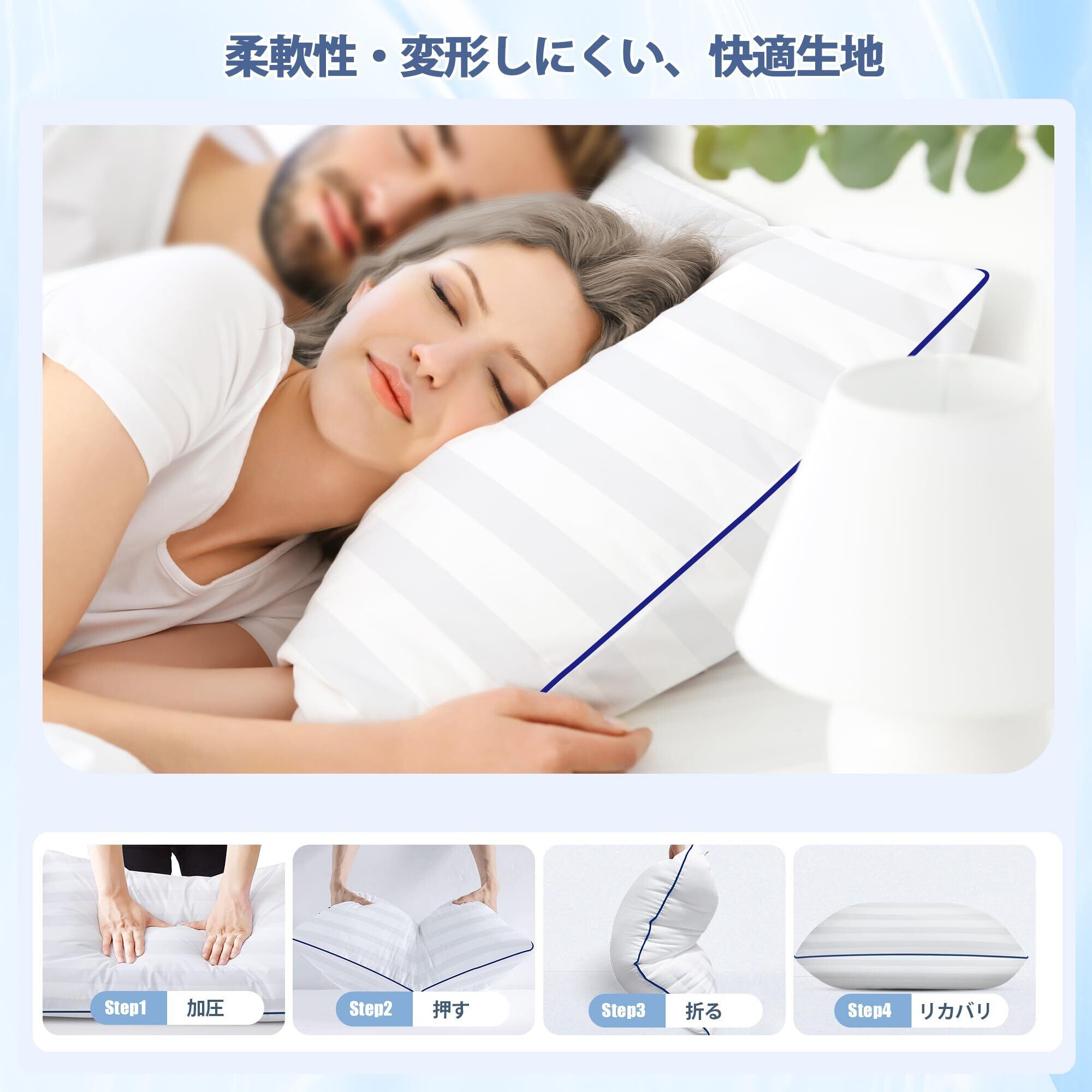 【通気性抜群でムレにくい】詰め物には通気性に優れた3Dポリエステル綿を採用。独自の立体構造で空気の流れを確保し、長時間使ってもムレにくい構造です。夏の暑い夜も、冬の暖房時も、一年を通して快適に使える、まさに理想の安眠枕です。