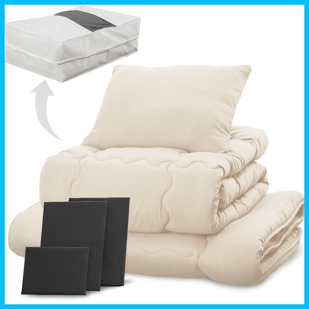 【掛け布団・敷布団・枕・掛け布団カバー・敷き布団カバー・枕カバー・収納袋の7点】のお得な布団セットです。