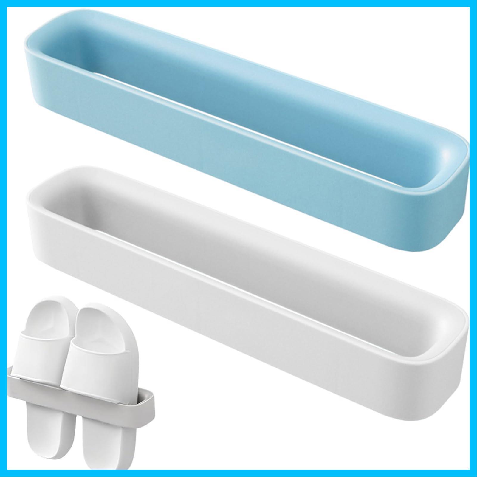 スリッパラック 2個セット 壁掛け式 穴開け不要 粘着式 スリッパ置き サンダル収納 スリッパ掛け 壁面に傷つかない 浴室用スリッパラック 省スペース 玄関 浴室収納 ホワイト+ブルー