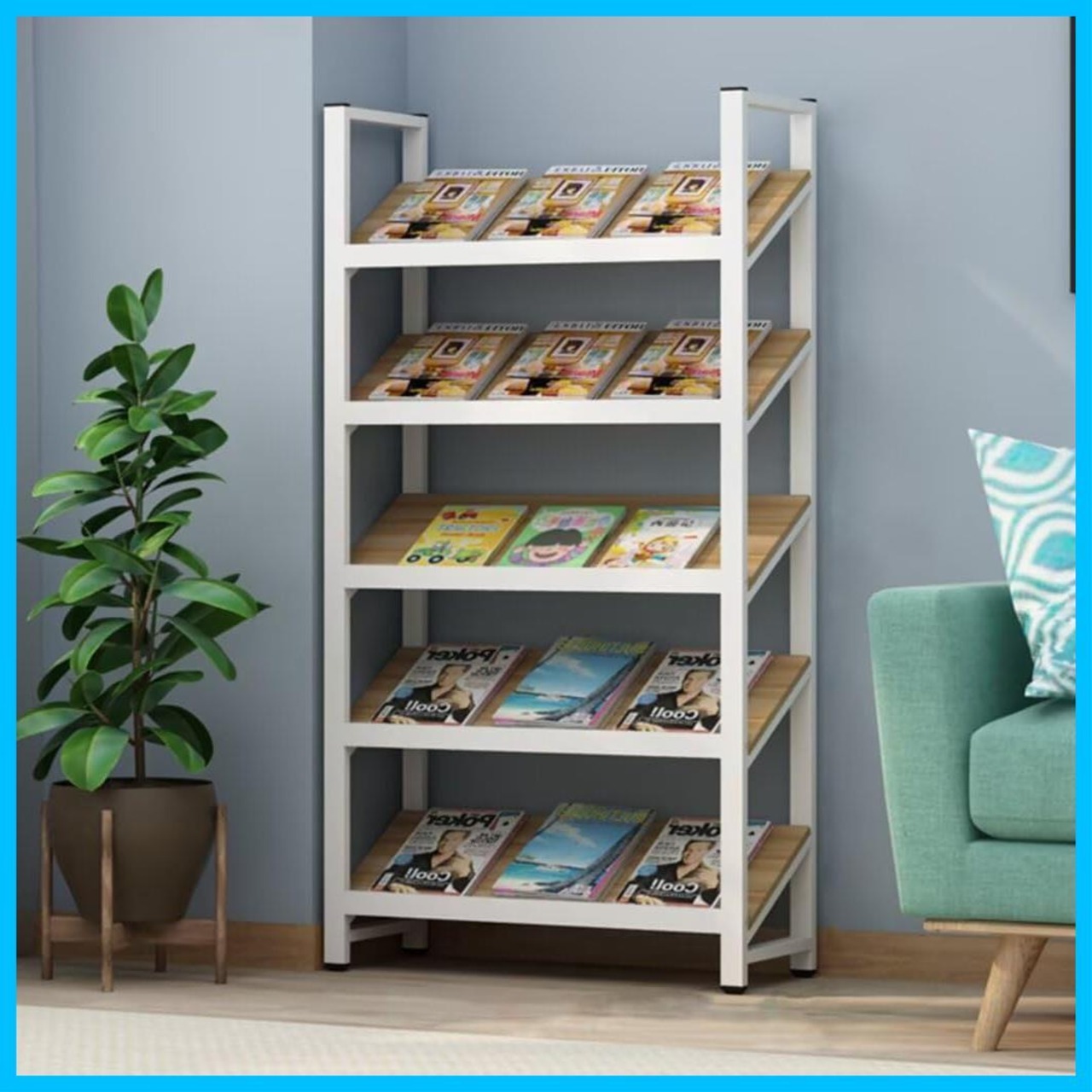 【シンプルでおしゃれなデザイン】このマガジンラックのデザインはシンプルであり、鉄製のフレームと木製の棚板が室内の雰囲気と調和していて、オフィスではカタログの展示などディスプレイラックとして最適です。