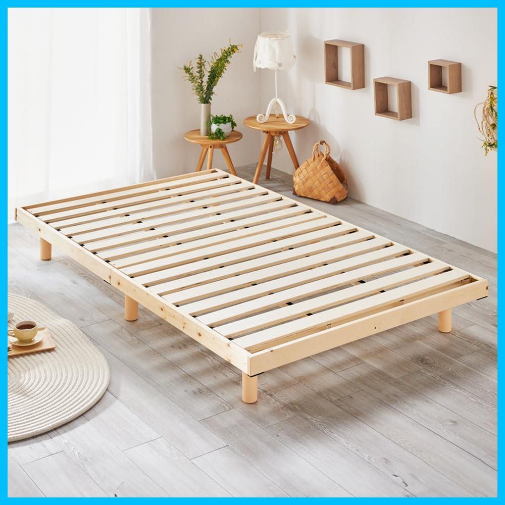 アイリスプラザ ベッド ベッドフレーム シングル 2段階 高さ調整 耐荷重約200kg 天然木 すのこベッド ナチュラル 幅約98×長さ約200cm×高さ約6.5~23.5㎝
