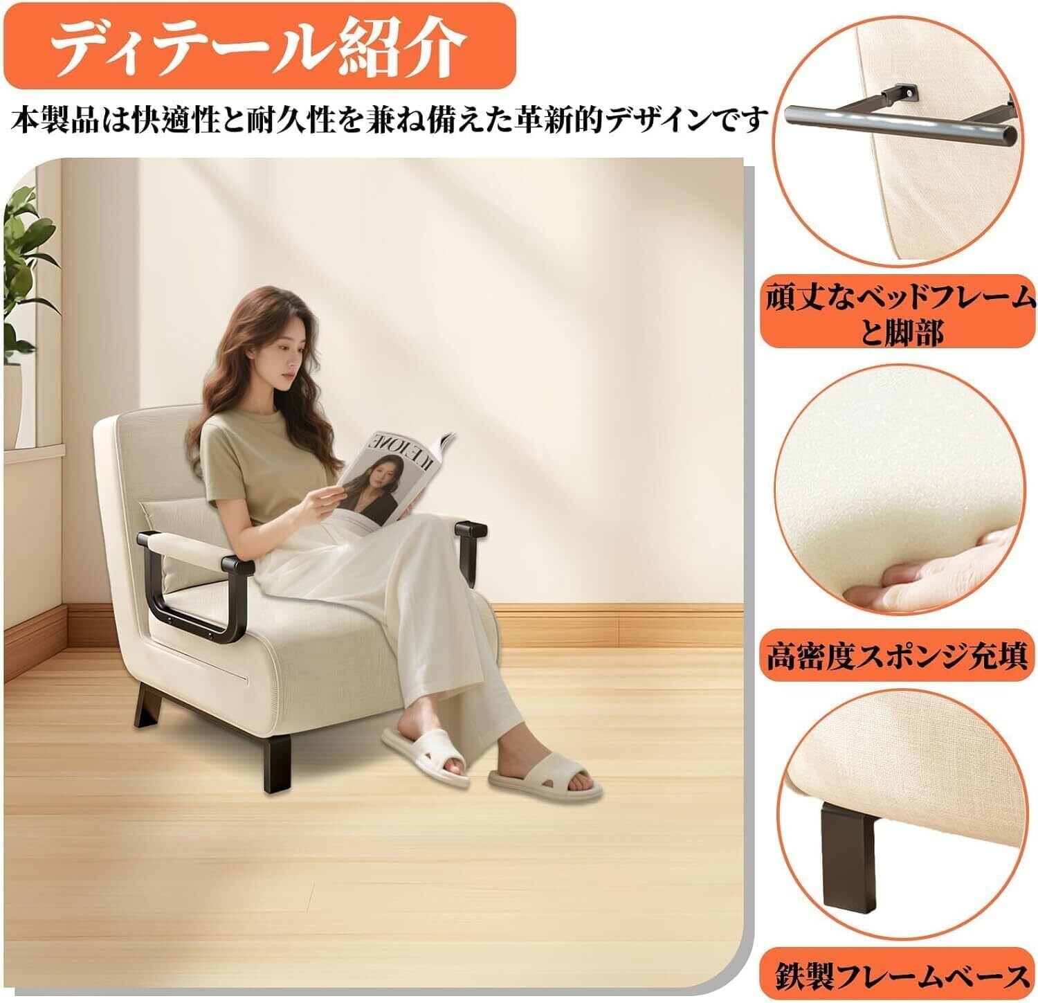 【特価セール】YGOTUY ソファベッド 折りたたみ 一人用 高反発素材 5段階調整可能 3WAY ソファー クッション付き 肘掛付き ソファー椅 コンパクト 省スペース 簡単収納 一人暮らし リビング 寝室 来客用 オフィスの昼休み インテリア用品 組立簡単 説明書付き 幅65cm (ベージュ)