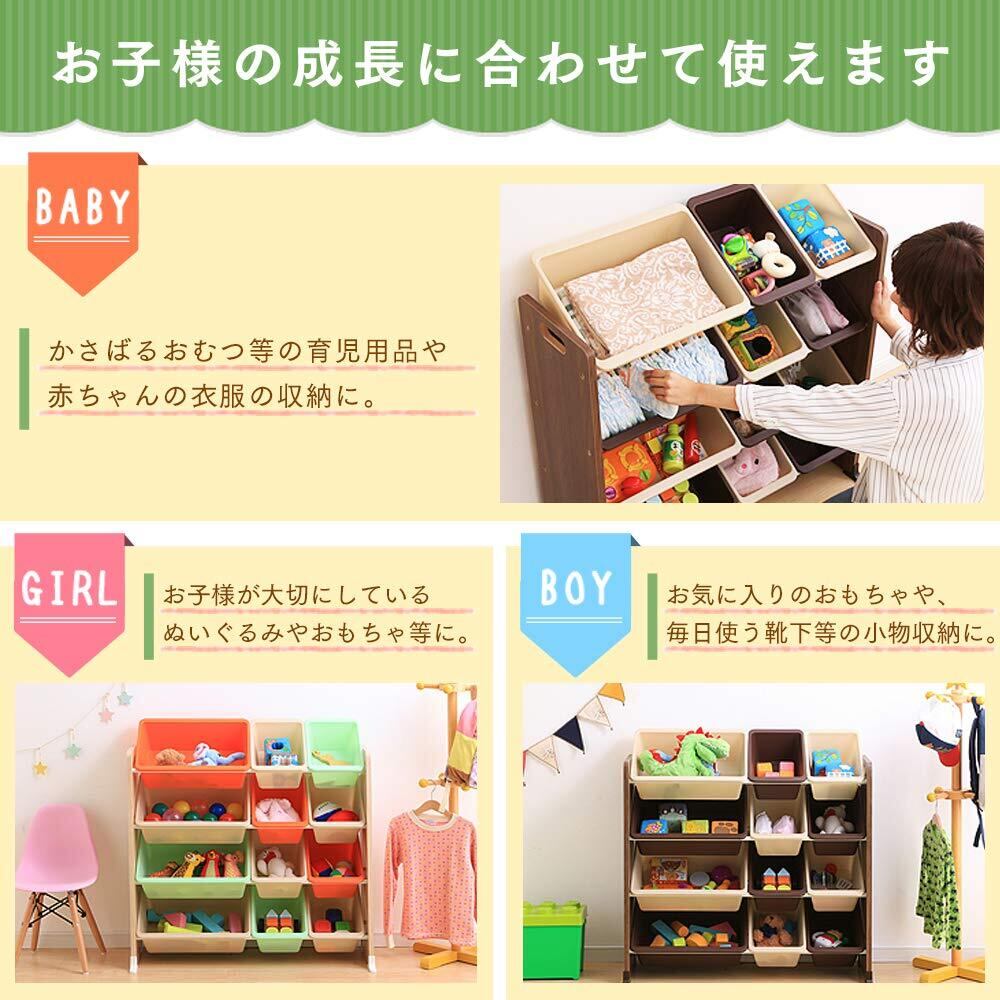 ぬいぐるみやブロック等、たくさん収納できる4段タイプ。