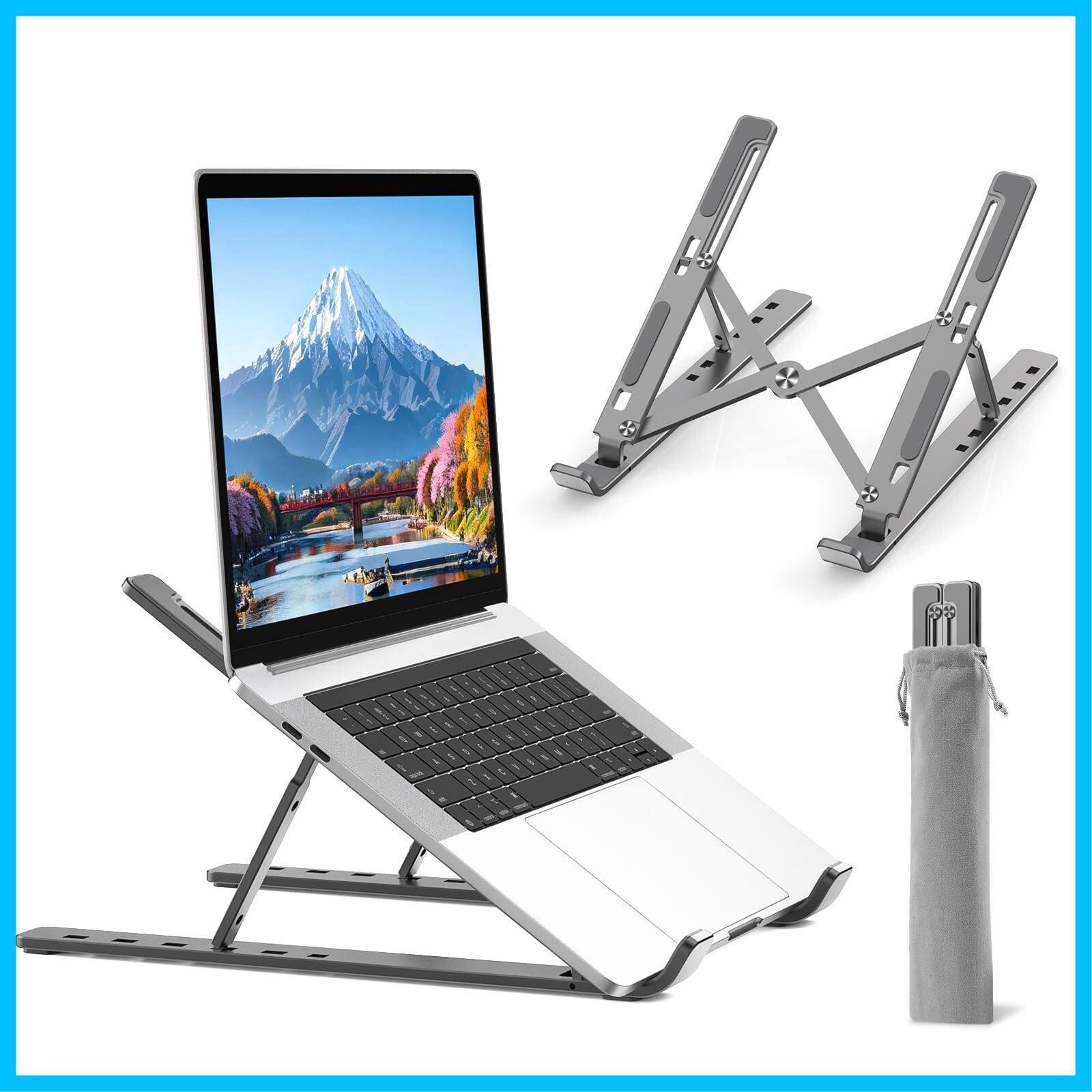 【在庫セール】BoYata ノートパソコン スタンド PCスタンド iPadスタンド 折りたたみ式 ラップトップスタンド 本スタンド 6段階調節可能 軽量 放熱 アルミ合金製 15.6インチまでデバイスに対応 在宅/出勤勤務 収納袋付き グレー