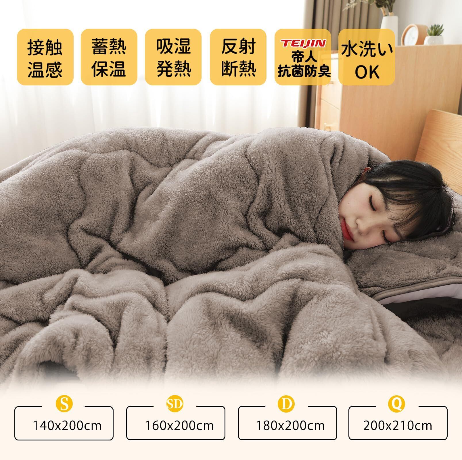 【帝人TEIJINマイティトップ中わた】掛け布団 シングル アルミシート入り 多重保温 吸湿発熱・蓄熱保温 掛け毛布 冬接触温感あったか かけ布団 二枚あわせ 厚手 キルトケット もうふ フランネル 静電気防止 抗菌防臭防ダニ加工 丸洗い 140x200cm モカ LIFERISE