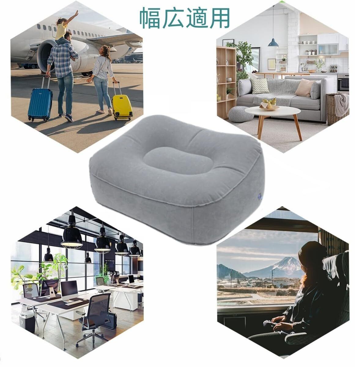 【幅広適用】家とオフィスにオットマンとして、腰枕や椅子として、テレワークの快適グッズとして休憩時に便利です。新幹線、長距離ドライブ、 飛行機、電車、バス等様々なシーンで活躍しています。