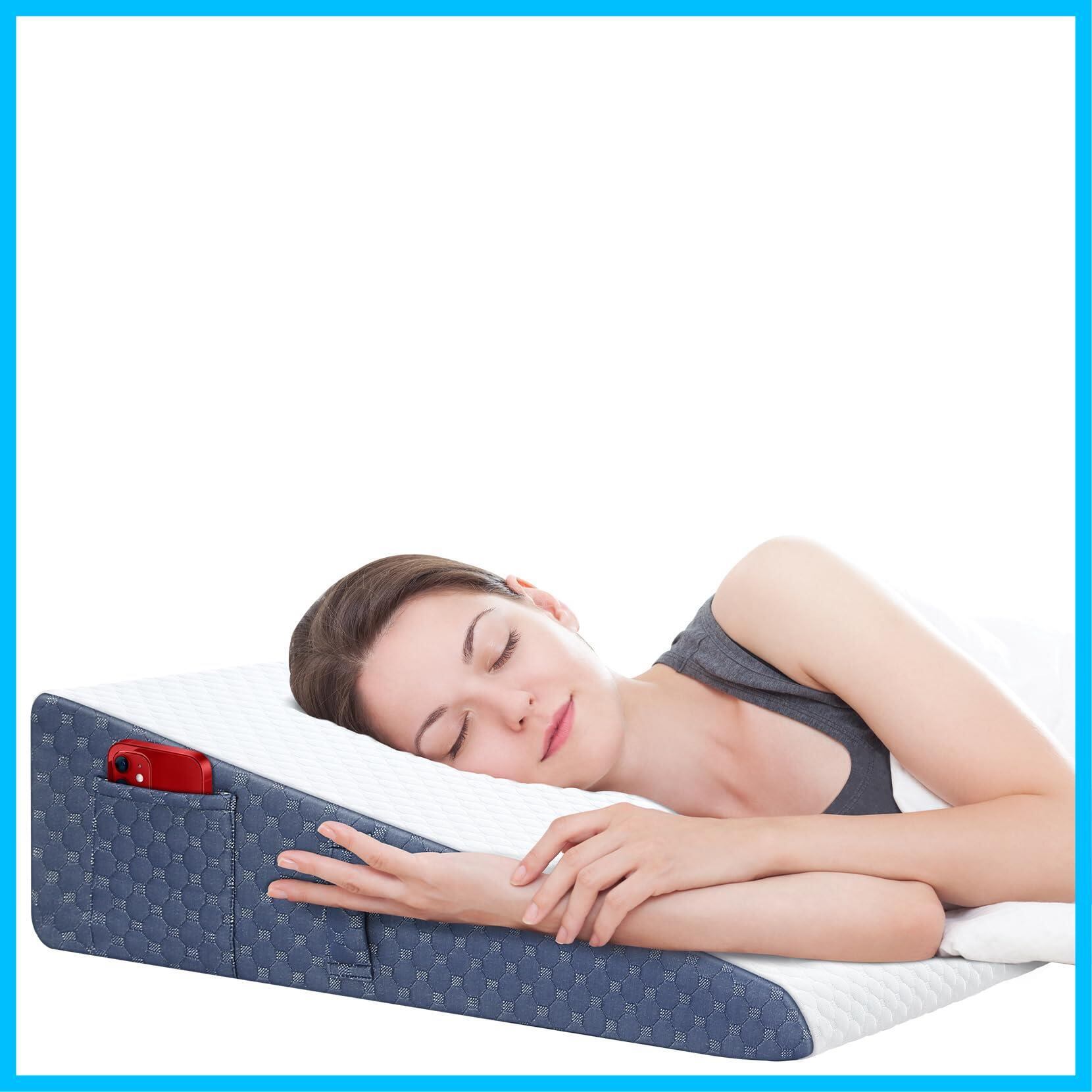 ️️【快適サポート傾斜枕】テレビ鑑賞・読書・仮眠時の背もたれとして、また就寝時のいびき軽減・逆流性食道炎対策にお役立ちます。 なだらかな傾斜が上半身を優しく支え、手術後の回復期の方・妊婦様にも安心してお使いいただけます。 胃の圧迫感軽減・呼吸のしやすさ、腰足の負担軽減を通じ、昼夜を問わず快適な姿勢保持をサポートいたします。
