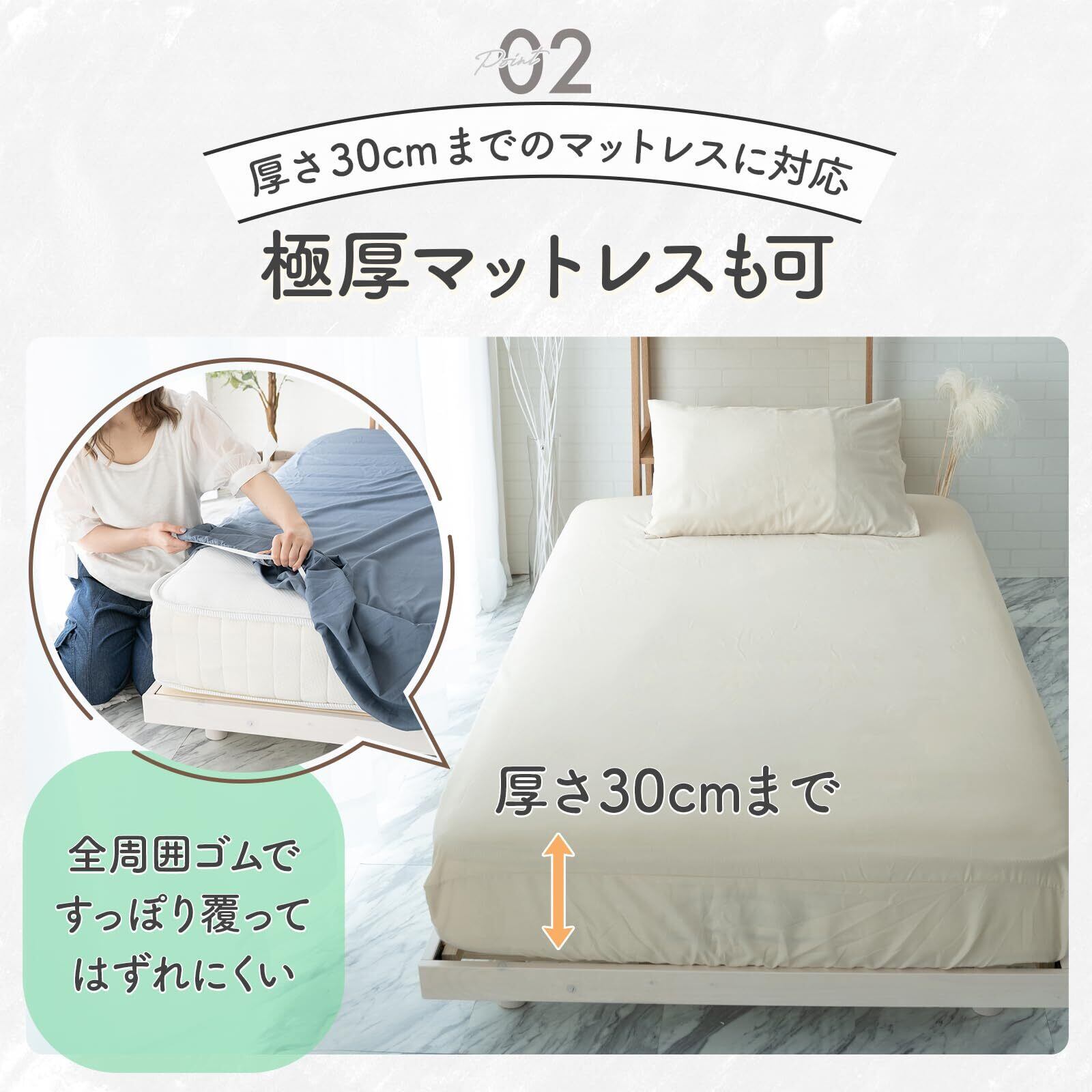【厚めのマットレスもOK!】マチの長さは35cm、30cmまでのマットレスに対応できます。全周ゴム付きなので、薄めのマットレスから厚めのマットレスまですっぽり装着でき、ずれにくいベッドカバーです。