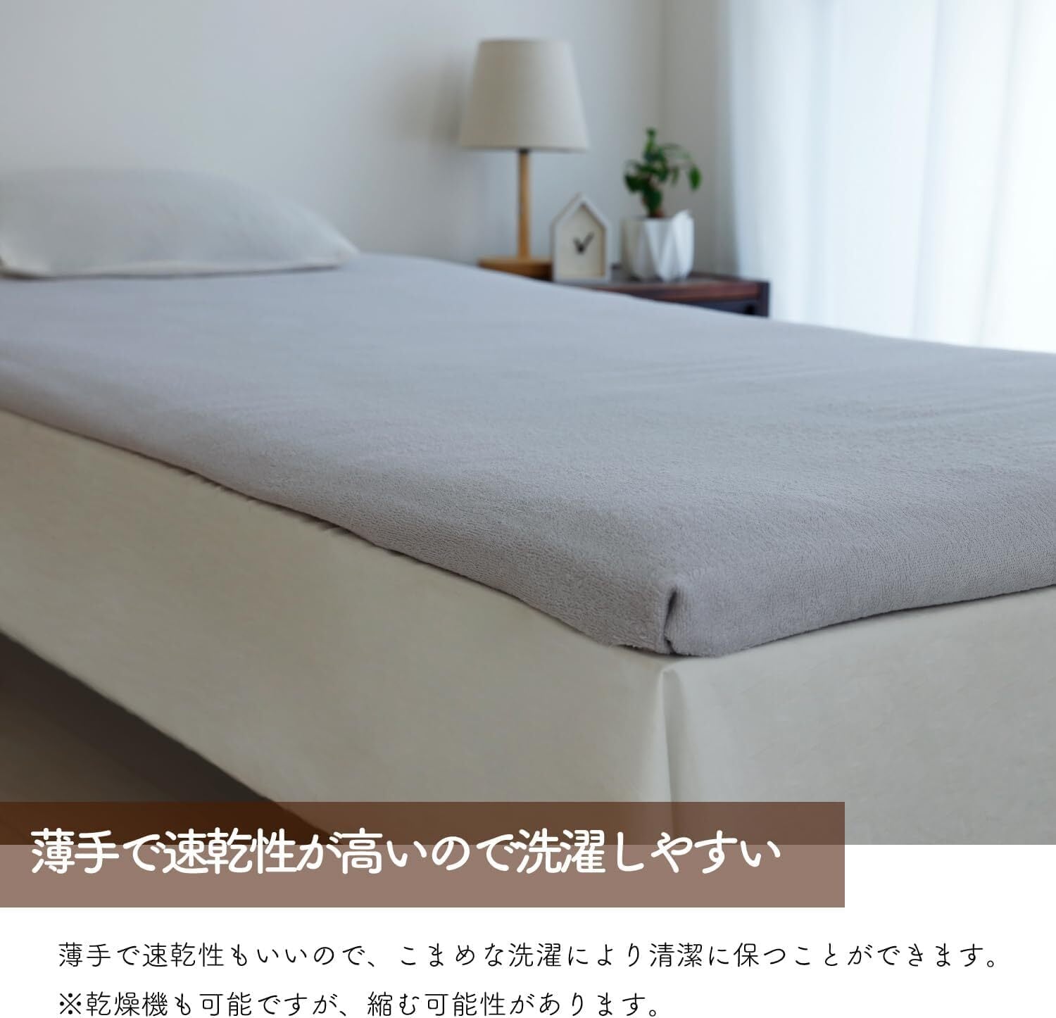 このタオルシーツは、シンプルなフラット形式のため、敷布団やマットレスにしっかりフィットし、寝返りを打ってもズレる心配はありません。一枚での使用はもちろん、重ねて利用してもマルチに活躍します。忙しい朝のベッドメイキングもストレスフリーです。